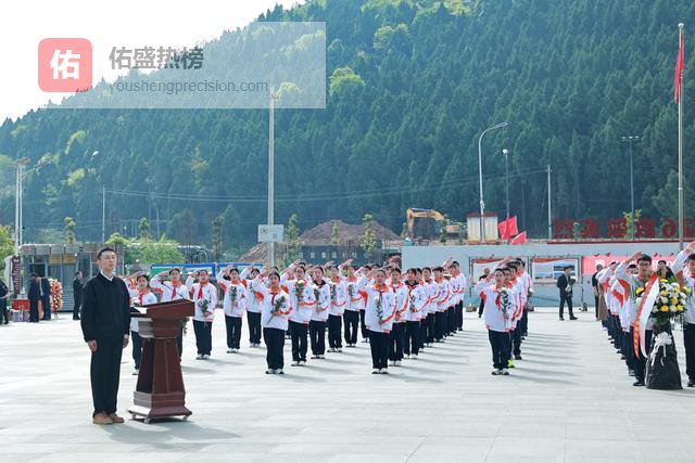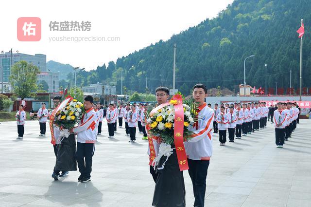 向烈士纪念碑敬献花篮、整理缎带,全体师生依次鞠躬、献花。洁白的花朵,承载着无尽敬意;庄重的礼仪,诉说着少年赤诚。