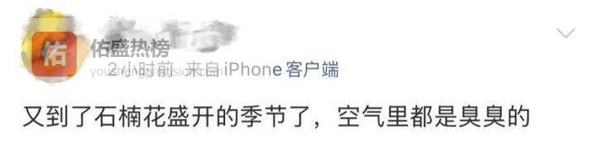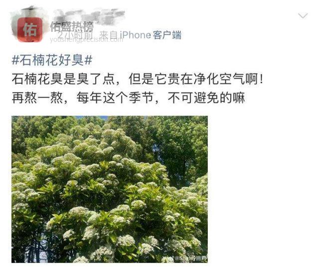 当然在众多“吐槽”的声音里,也有网友表示理解:石楠花臭是臭了点,但是它贵在净化空气啊!再熬一熬,每年这个季节,不可避免的嘛!