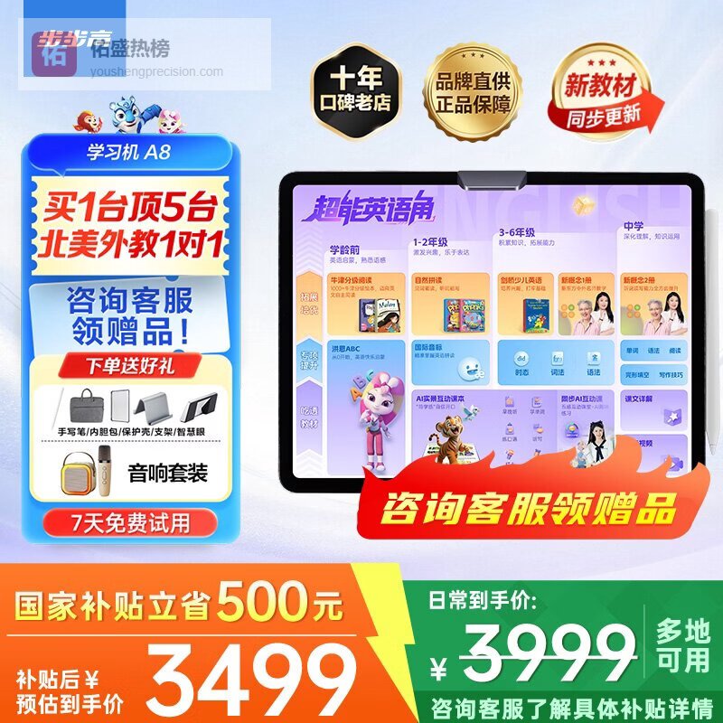 多功能学习设备:功能丰富的平板设备让学习变得更加有趣,不仅可以进行英语学习,还支持各种早教资源,满足不同年龄段的需求。在家、学校等多种环境下,都能为学生提供个性化的学习方式,实现娱乐与学习的完美结合,培养全面发展的能力。