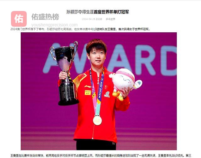 女队这边孙颖莎更狠,直接创造了53年没人做到的纪录。从2023年德班世乒赛开始,她连续三年包揽世界杯女单冠军,成为史上首个“三连冠”女王。但过程可比奖杯照片刺激多了——1/8决赛1比2落后蒯曼,1/4决赛3比2落后高达,第七局1比5眼看着要凉。结果莎莎愣是上演“血条消失术”,把对手领先优势当经验包给刷了。现在她的世界积分冲到12100,比第二名高出快两个王艺迪的距离。