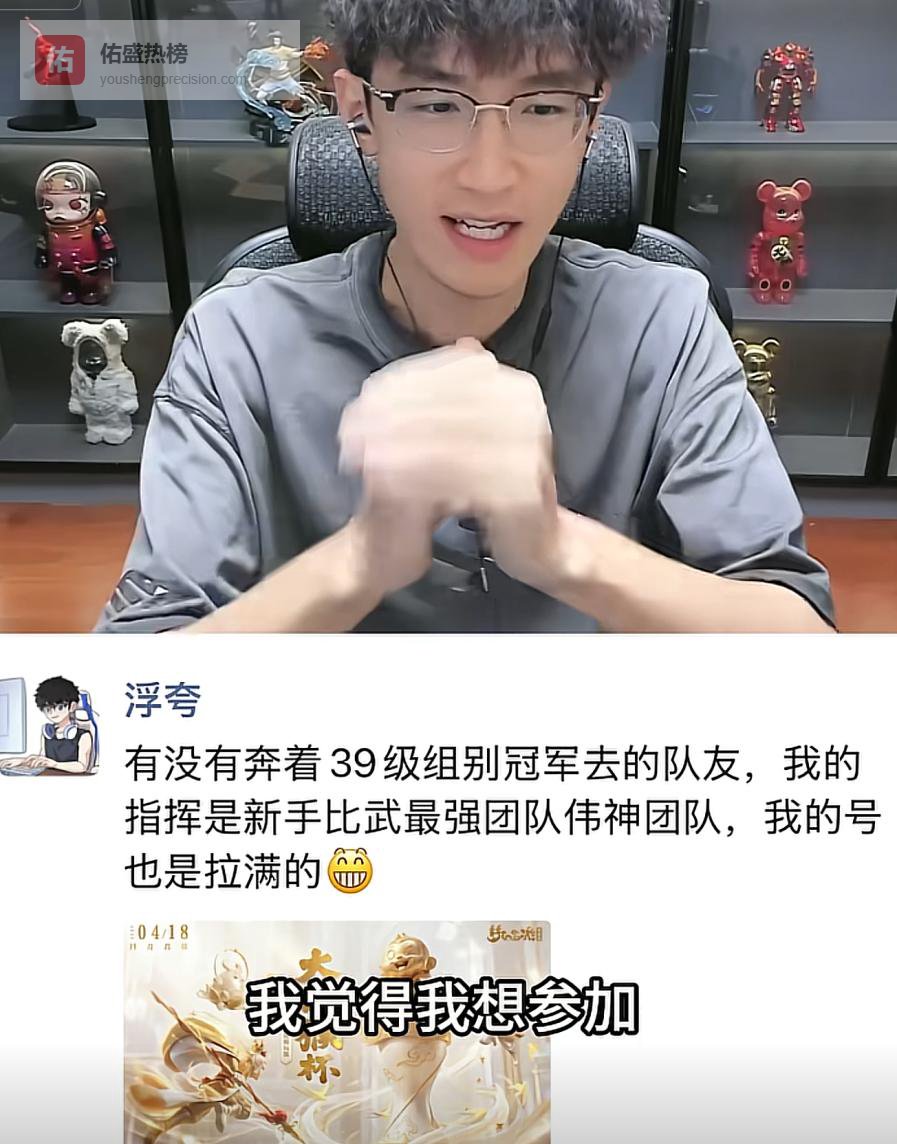 旭旭宝宝“齐天大圣”队的队友浮夸哥,最近也报名了大马猴杯。他选的不是高等级组,而是39级组别——别小看这个等级,浮夸哥可不是来凑数的。