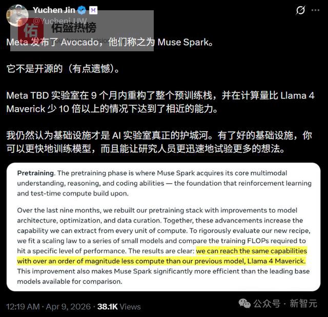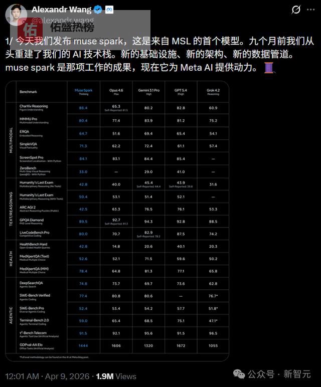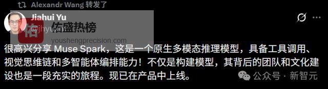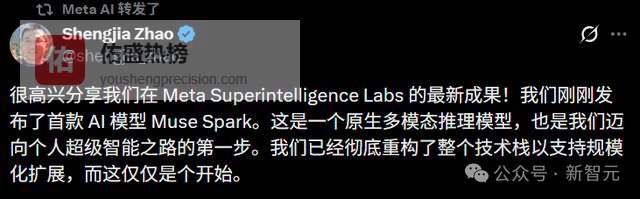 九个月前我们从零重建了整个AI技术栈,新基础设施、新架构、新数据管线。Muse Spark就是这些工作的成果。