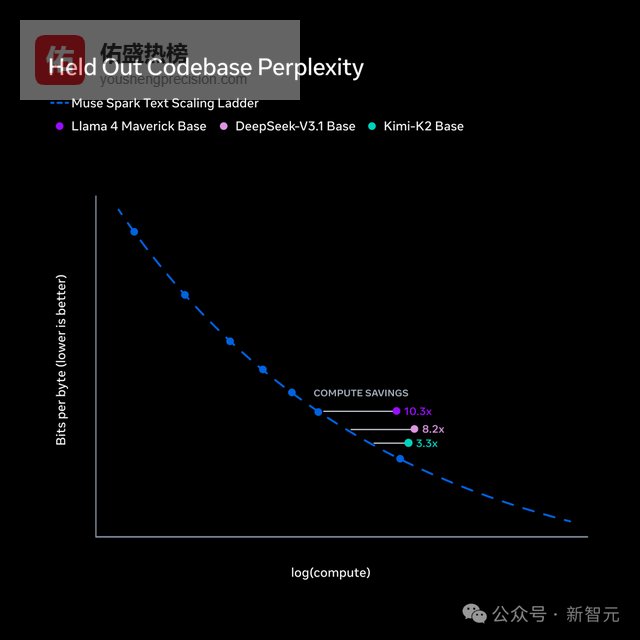 结论很硬,同样的能力水平,Muse Spark需要的算力不到Llama 4 Maverick的十分之一。