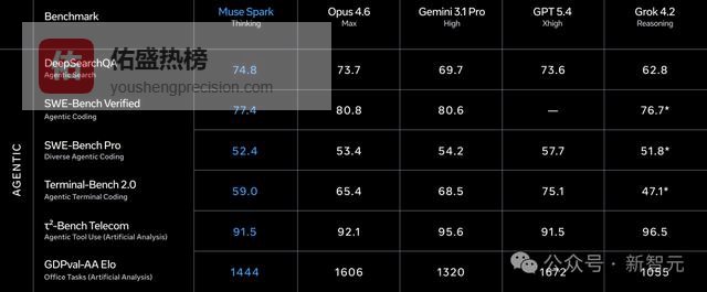 Meta自己也承认了,在代码和长时间Agent任务上,Muse Spark和最强模型还有差距。