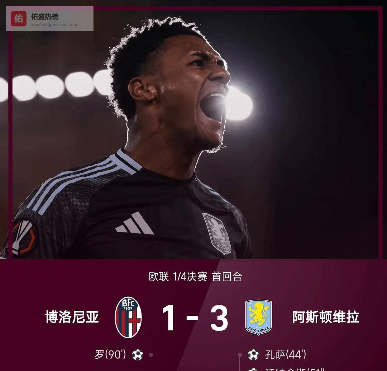 2026年4月10号这个普通的星期四凌晨,一支英格兰球队悄悄干成了一件连切尔西、曼联、阿森纳这些传统豪门都没做到过的事儿。 阿斯顿维拉,对,就是那支你印象中在英超中游徘徊的球队,在欧联杯里已经一口气赢了8场球了。 他们刚刚在意大利3-1拿下了博洛尼亚,顺手就把英格兰球队在欧联杯的连胜纪录,刻上了自己的名字。 这个夜晚的欧联杯1/4决赛首回合,可不止这一出好戏。