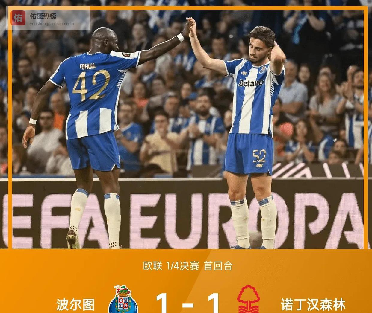 制造了惊天乌龙的马丁·费尔南德斯,在几分钟后的一次对抗中受伤,无法坚持比赛,在第19分钟就被换下。 这个夜晚对他来说,无疑是噩梦般的。 下半场第63分钟,波尔图由伊戈尔·热苏斯打入一球,但经过VAR长时间的回看,主裁判认定他在进球前有冲撞门将的动作,进球无效。 最终,这场充满了意外和争议的比赛,以1-1的平局收场。 诺丁汉森林带着一个客场进球和一场充满运气的平局,回到了英格兰。