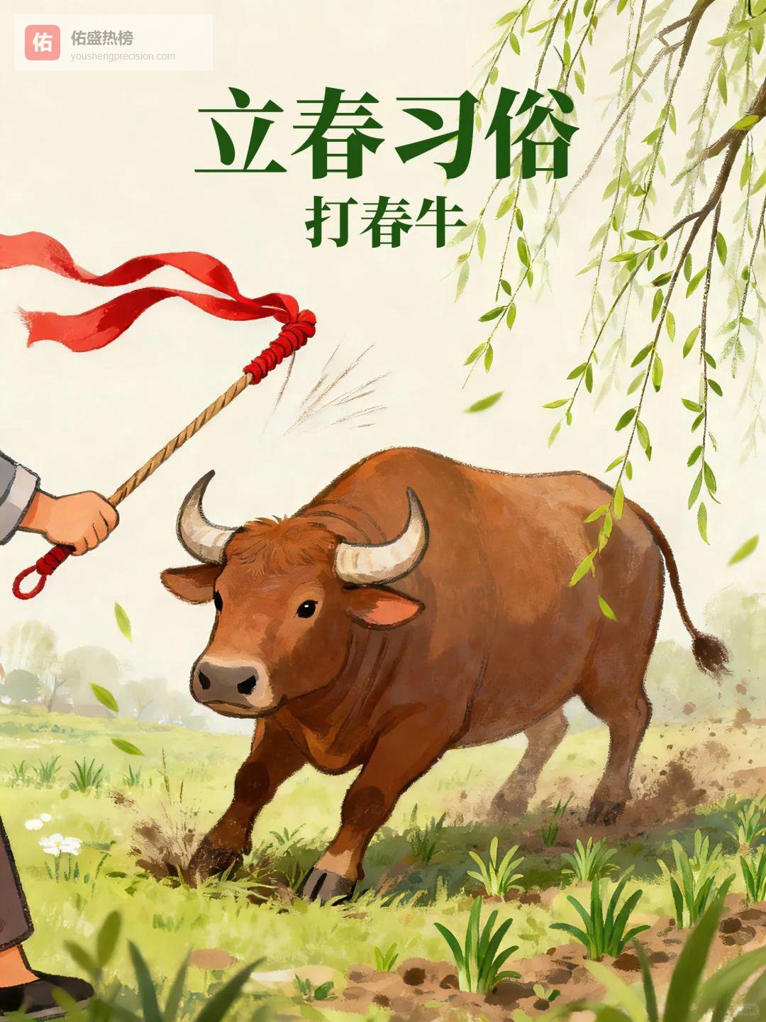 立春这天,官府会做一头泥牛,人们敲锣打鼓抬着游街,然后用彩鞭抽打春牛,庆祝春天的到来,春耕开始。