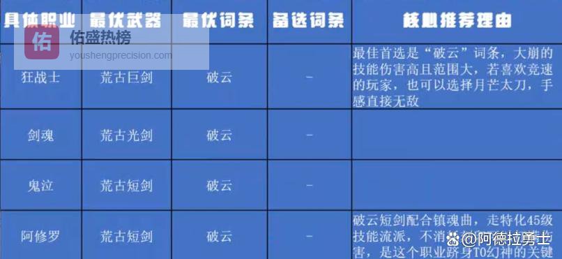 这次送的自选荒古礼盒是真的完全自选啊,大家不仅仅能自选武器种类,比如狂战士肯定是自选荒古巨剑。然后这自选的荒古巨剑还能自选四种特化词条,普通玩家可能直接就选择了月芒词条了,但其实狂战士的毕业词条是破云,伤害比其他词条要高不少。而其他鬼剑士职业也最好选择破云,如果大家不知道选什么词条,那么无脑选择破云就行。