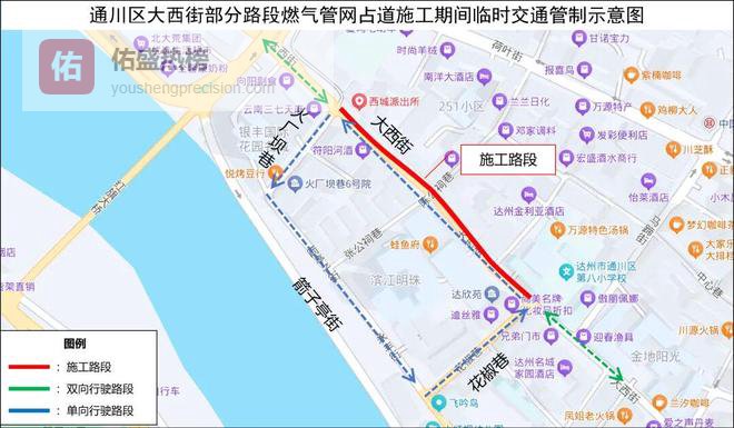 (一)占道施工期间对大西街火厂坝路路口→火厂坝路箭亭子路路口→箭亭子路路口花椒巷路口→花椒巷大西街路口→大西街火厂坝路路口路段实施单向循环交通组织;
