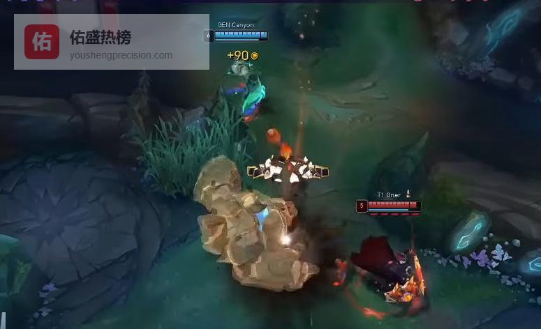 顺便再说一点:Canyon知道Oner还没有1000伤害的惩戒,没有进阶惩戒。因为他知道上河蟹刷新,也看到Oner去越上路了——Oner当时还有23层。Canyon立刻利用这一点:他没有回城,而是知道Oner会去拿蓝Buff,他插了眼。虽然他有点不走运,没直接看到人,但他直接惩戒抢掉。Oner因为惩戒差一点伤害,什么也做不了。