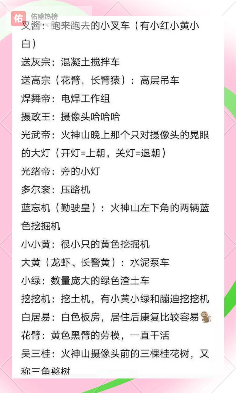 镜头里每一台机器都没逃过网友的“毒奶”。混凝土搅拌车被唤作“送灰宗”,黄色叉车则封为“叉酱”,连最不起眼的三棵桂树也被取名“吴三桂”。追星女孩甚至把焊枪叫“蓝忘机”,把灯架喊“胃无限”,每一台设备都拥有了人设。