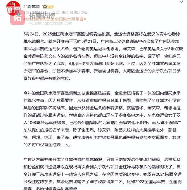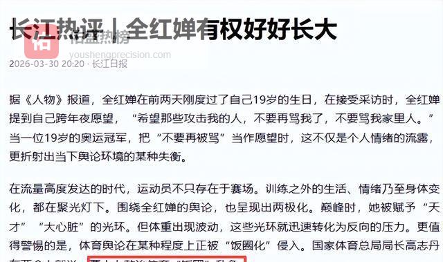 全妹就被部分网友盯上了,原因说起来让人无语——发育长胖了点,比赛不如以前稳定,甚至连在开学典礼露个面都能被议论“怎么这么胖”“是不是状态下滑”。
