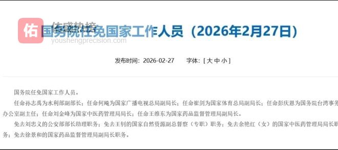 2026年2月,国务院任免国家工作人员,其中任命何飚为国家广播电视总局副局长。