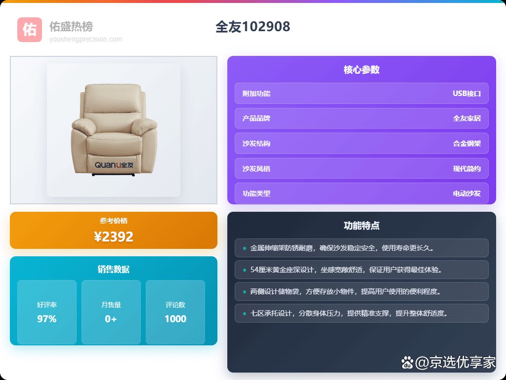 选购全友多功能沙发,关键还是得根据自己的实际需求和预算来决定。喜欢方便舒适就选电动款,追求性价比就选手动款。无论选择哪一款,都要关注沙发的材质、承托设计以及调节功能,确保买到一款真正适合自己的多功能沙发,让它成为你放松身心、享受生活的得力助手!