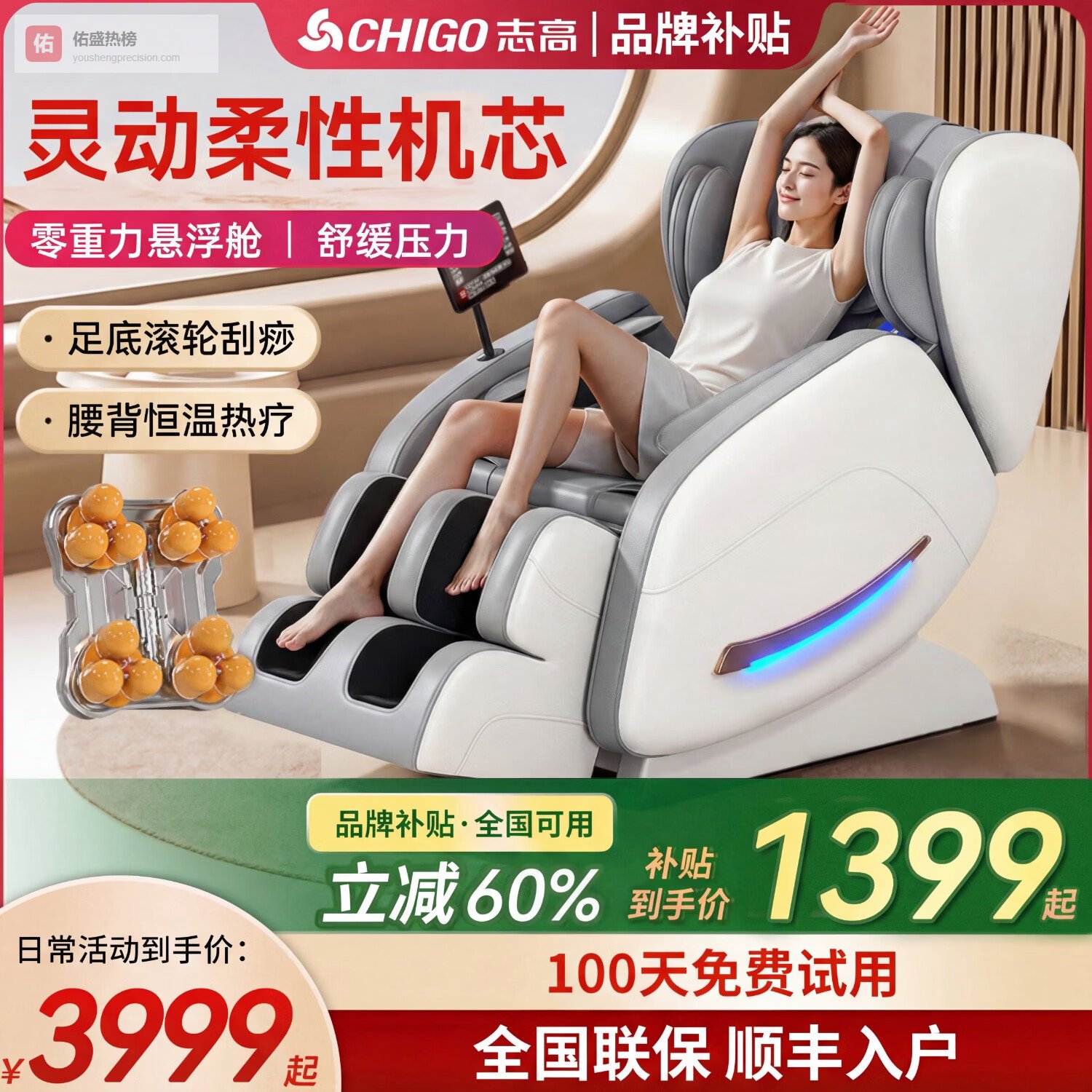 推荐理由:全自动智能按摩、零重力设计、多功能热敷