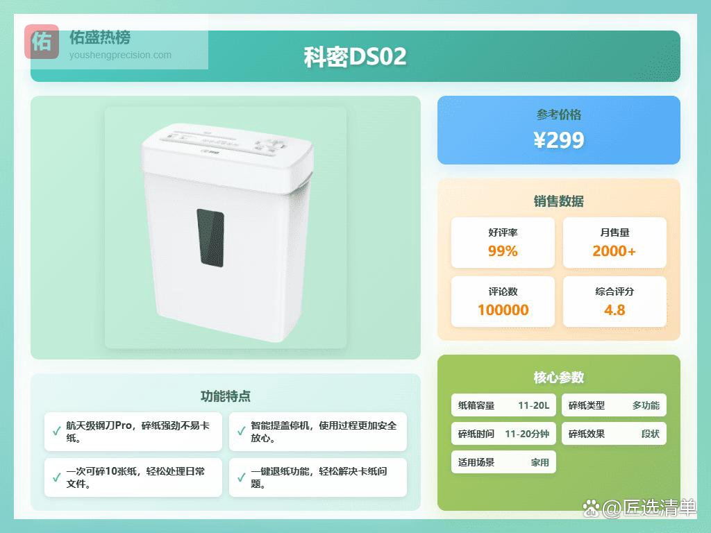 二、科密1️⃣ 多功能粉碎:这台科密DS02不仅能碎纸,还能碾碎光盘和卡片,支持多种介质,满足家里各种粉碎需求。无论是重要文件、光盘还是银行卡,都能轻松搞定,帮你搞定一大堆碎碎念。