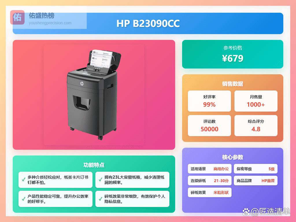 而且啊,我发现现在有些碎纸机不仅能碎纸,连银行卡、光盘都能搞定,感觉功能越来越强大了。当然,最重要的还是看它的保密等级和碎纸效果,毕竟安全才是第一位的。我仔细对比了好几款,也看了不少用户的评价,发现1000元内确实有一些不错的选择,既耐用又高效,算是很值得入手的。下面给大家挑了3款,感兴趣的可以了解下。