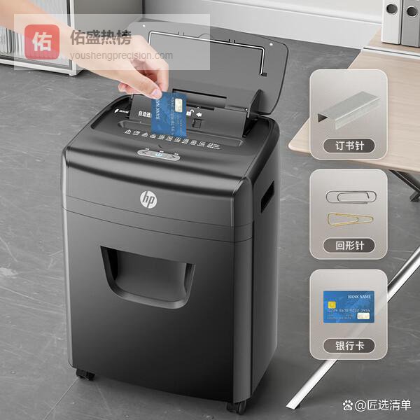 三、HP1️⃣ 强大碎纸能力:这款HP碎纸机一次还能粉碎51-100张纸,而且还能粉碎卡片、订书钉,满足各种碎碎需求。就算是文件多、需要快速处理,它也能帮你搞定,省心又省力。