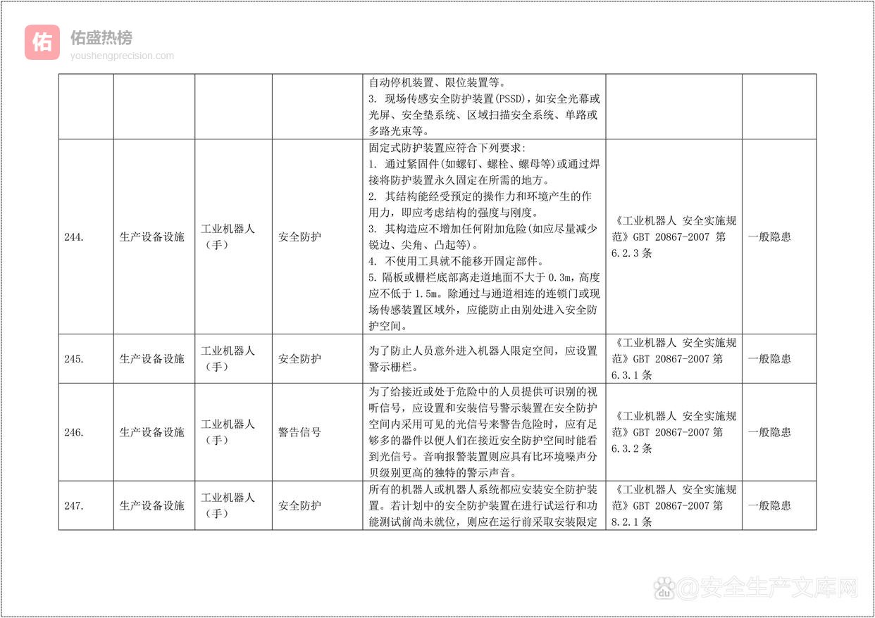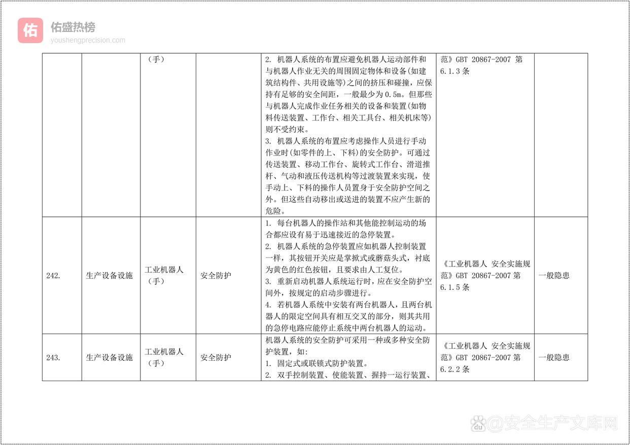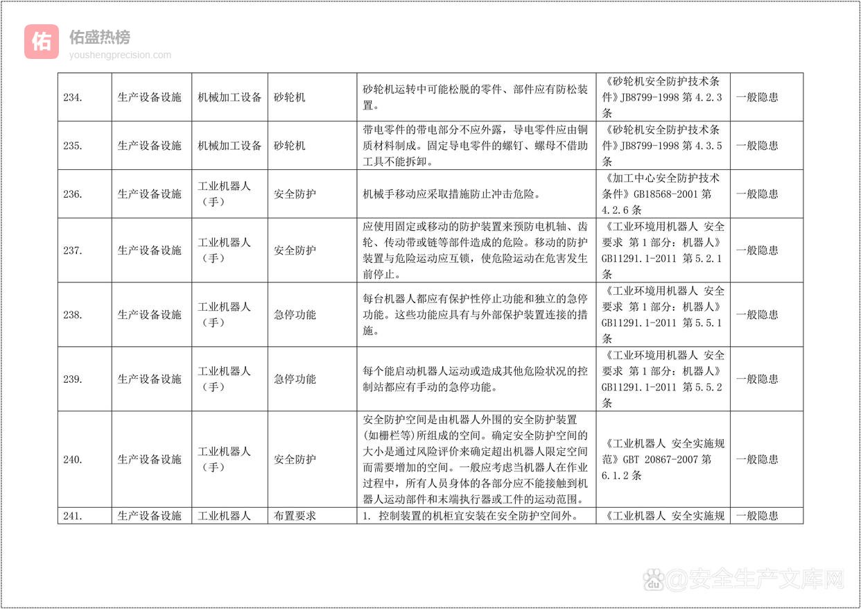 (三)生产设备设施安全覆盖金属切削、冲压剪切、木工机械、机器人、焊接切割等设备的防护、急停、限位要求。规范手持电动工具、气动工具、射线探伤、输送设备的安全使用与防护标准。