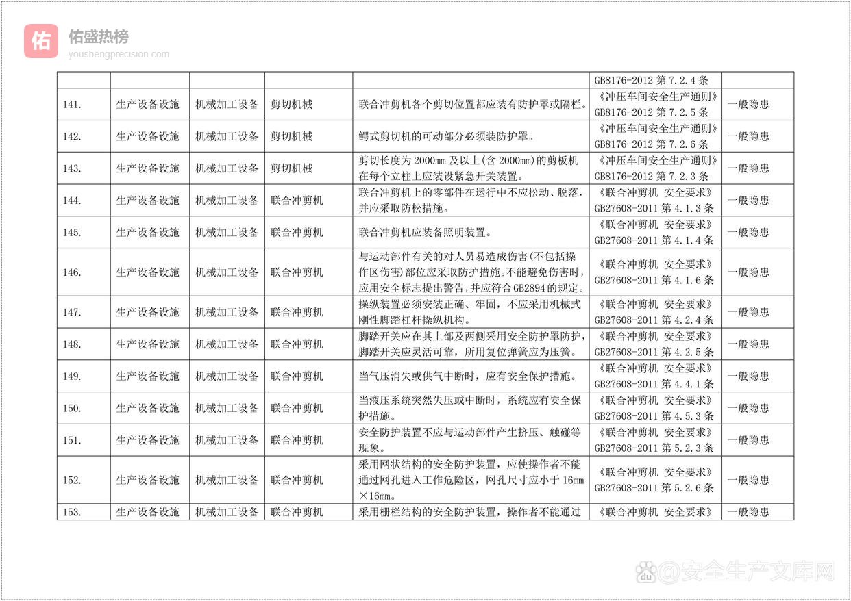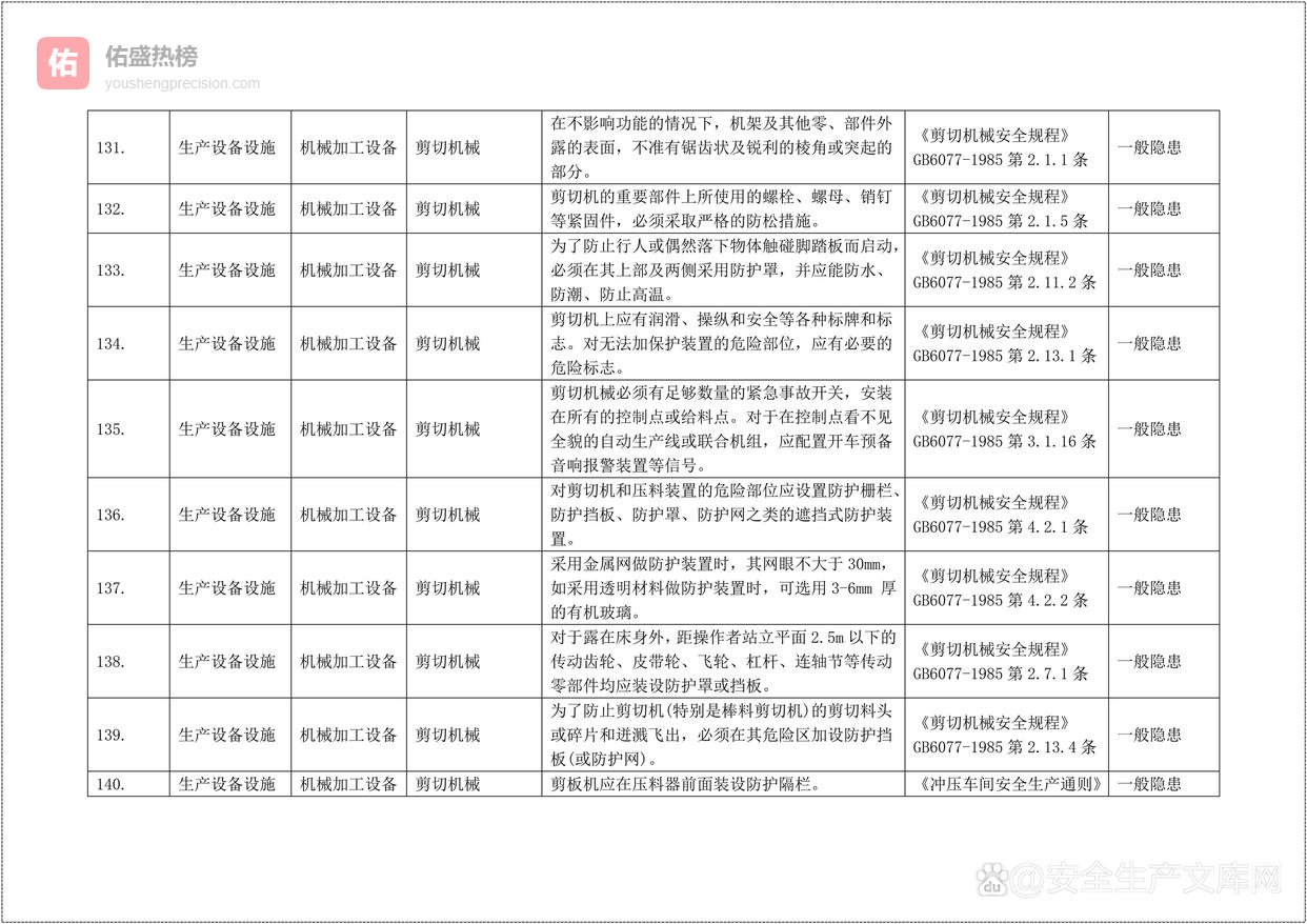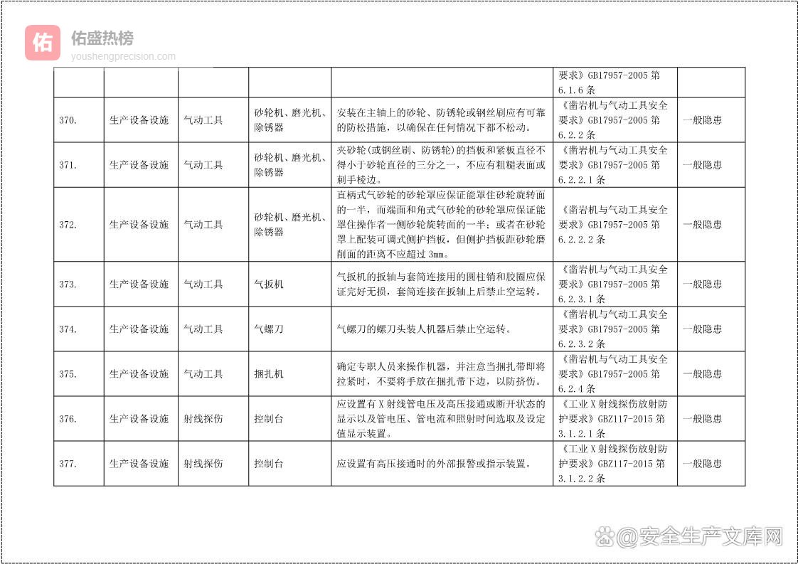 (三)生产设备设施安全覆盖金属切削、冲压剪切、木工机械、机器人、焊接切割等设备的防护、急停、限位要求。规范手持电动工具、气动工具、射线探伤、输送设备的安全使用与防护标准。