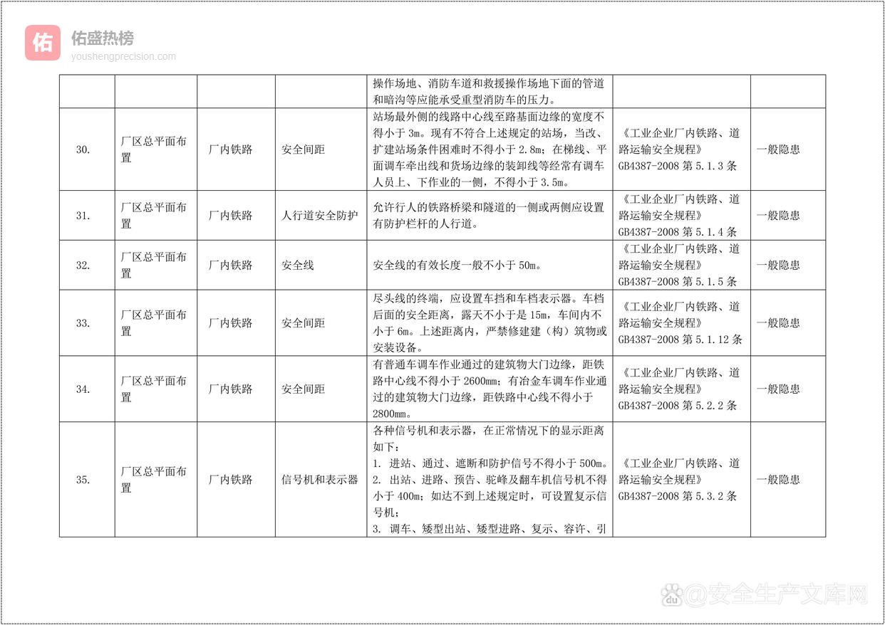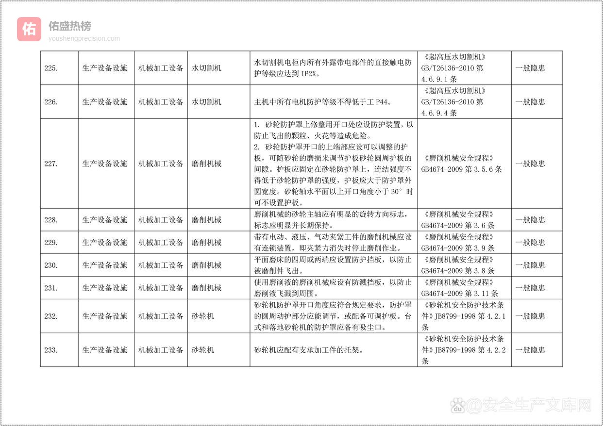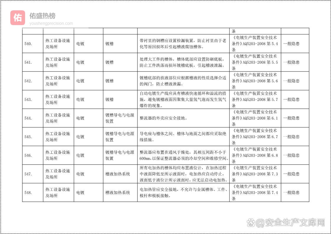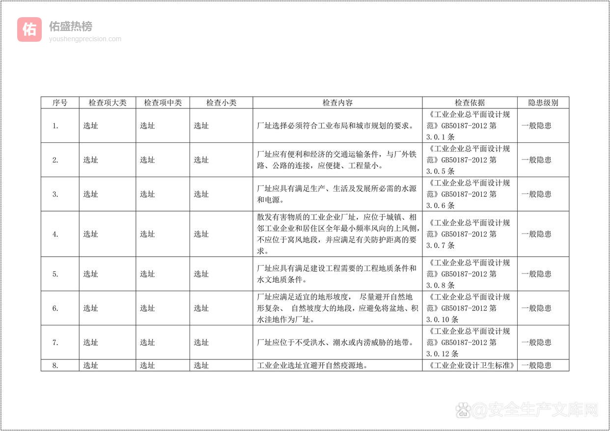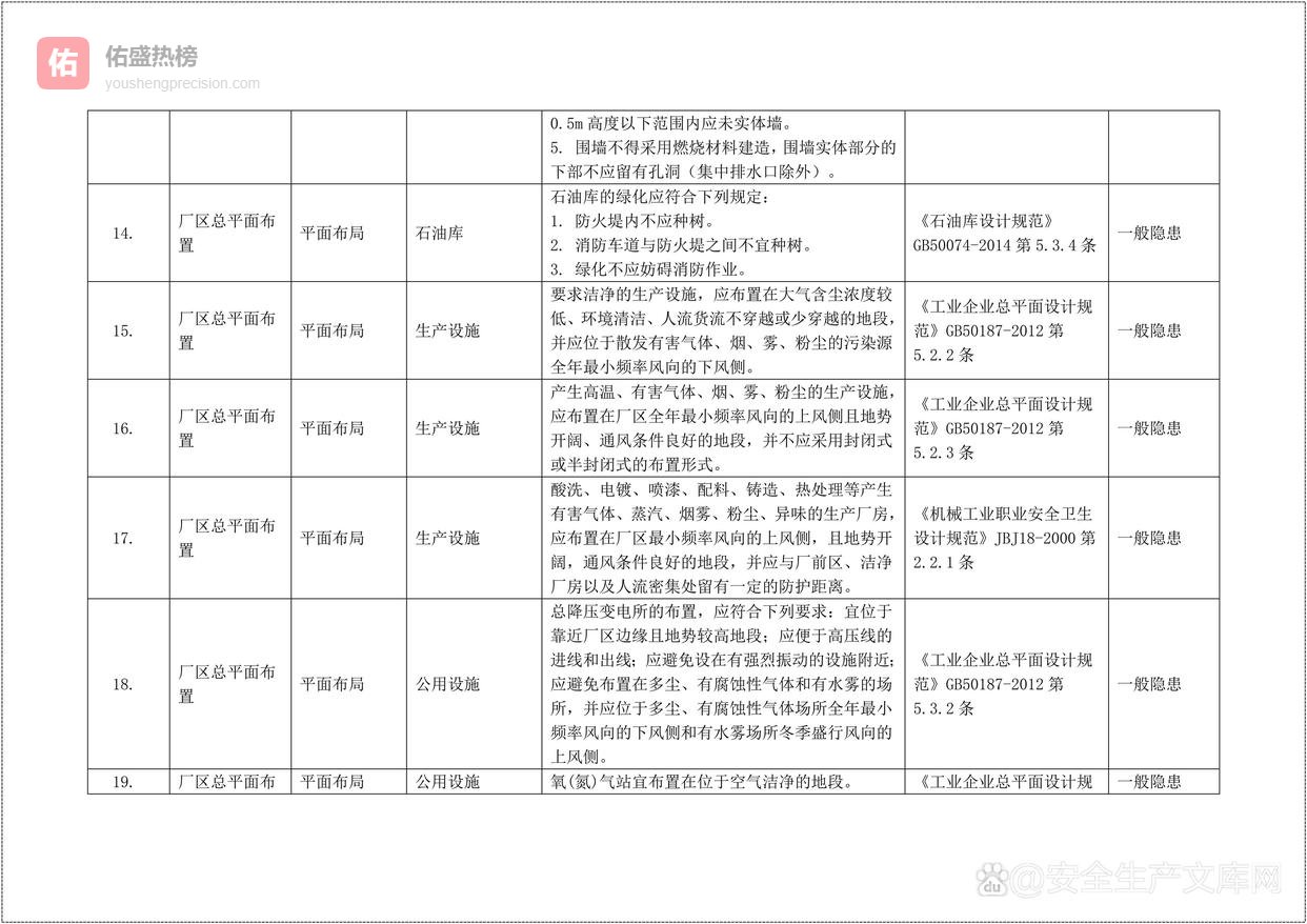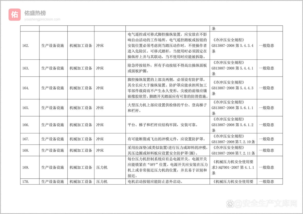 (二)车间作业环境安全细分机械加工、冲压、热处理、铸造、木工等车间的布局、通道、地面、防护要求。明确重大隐患判定标准,如危险管线穿越禁区、铸造炉前防水措施等。