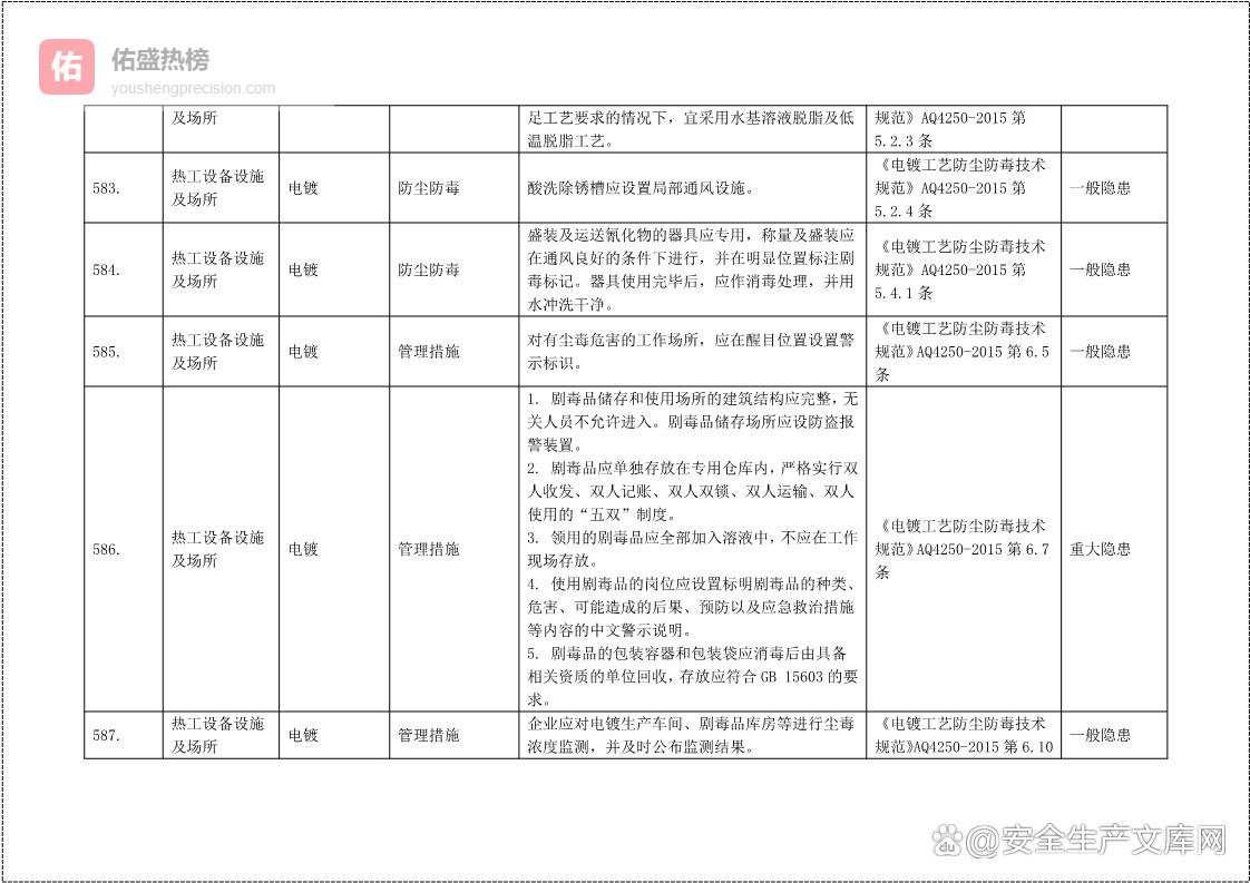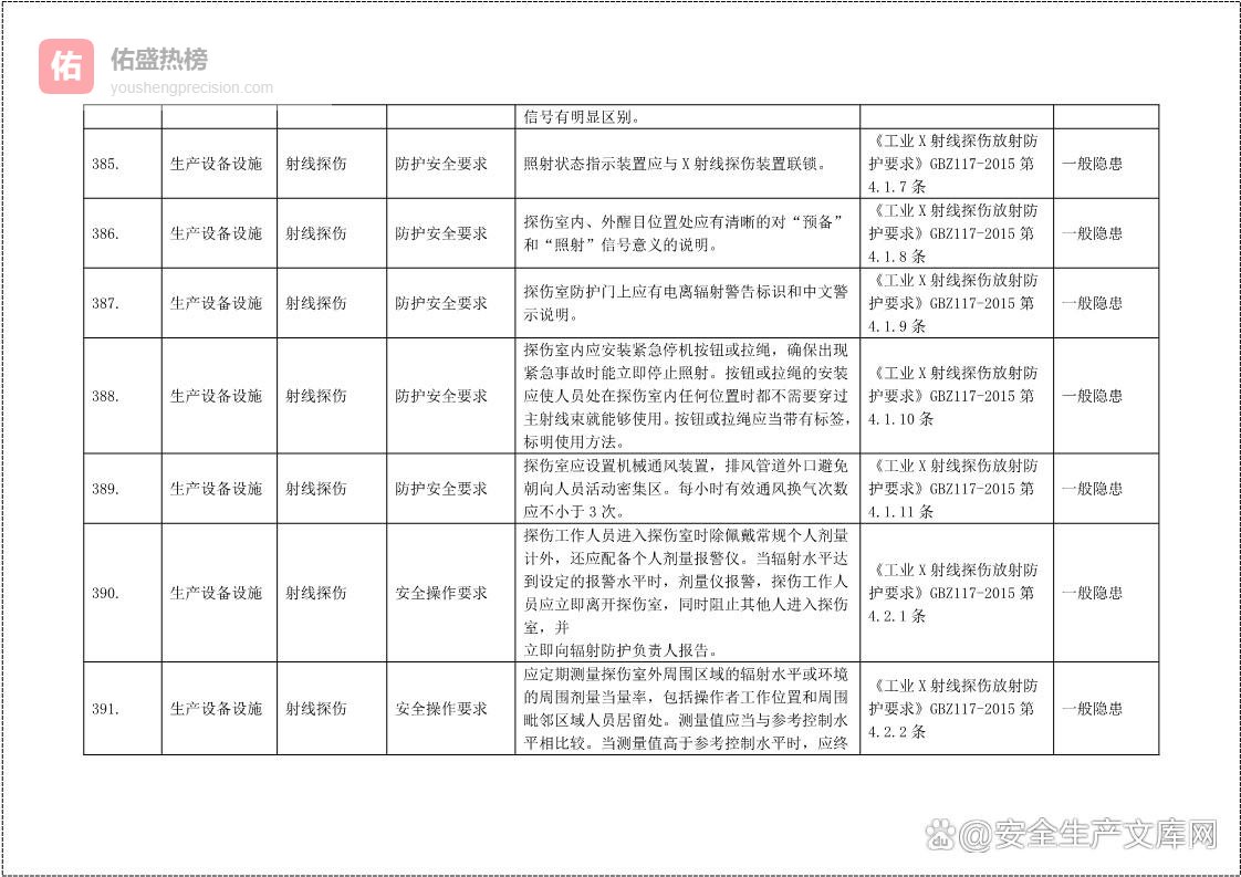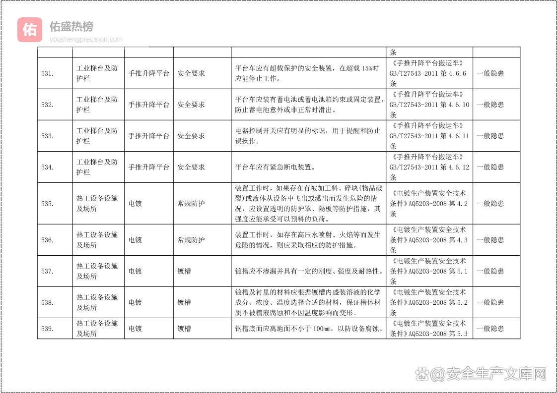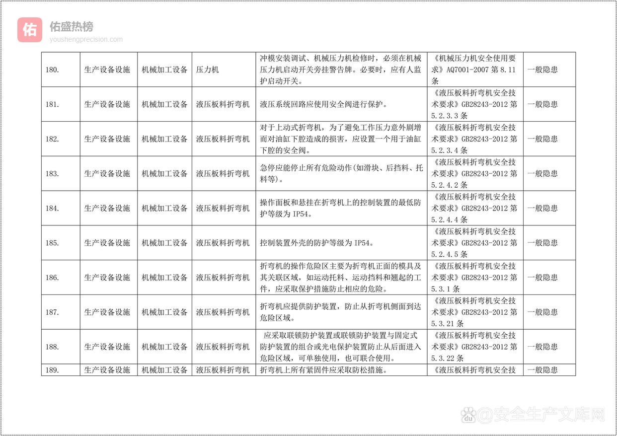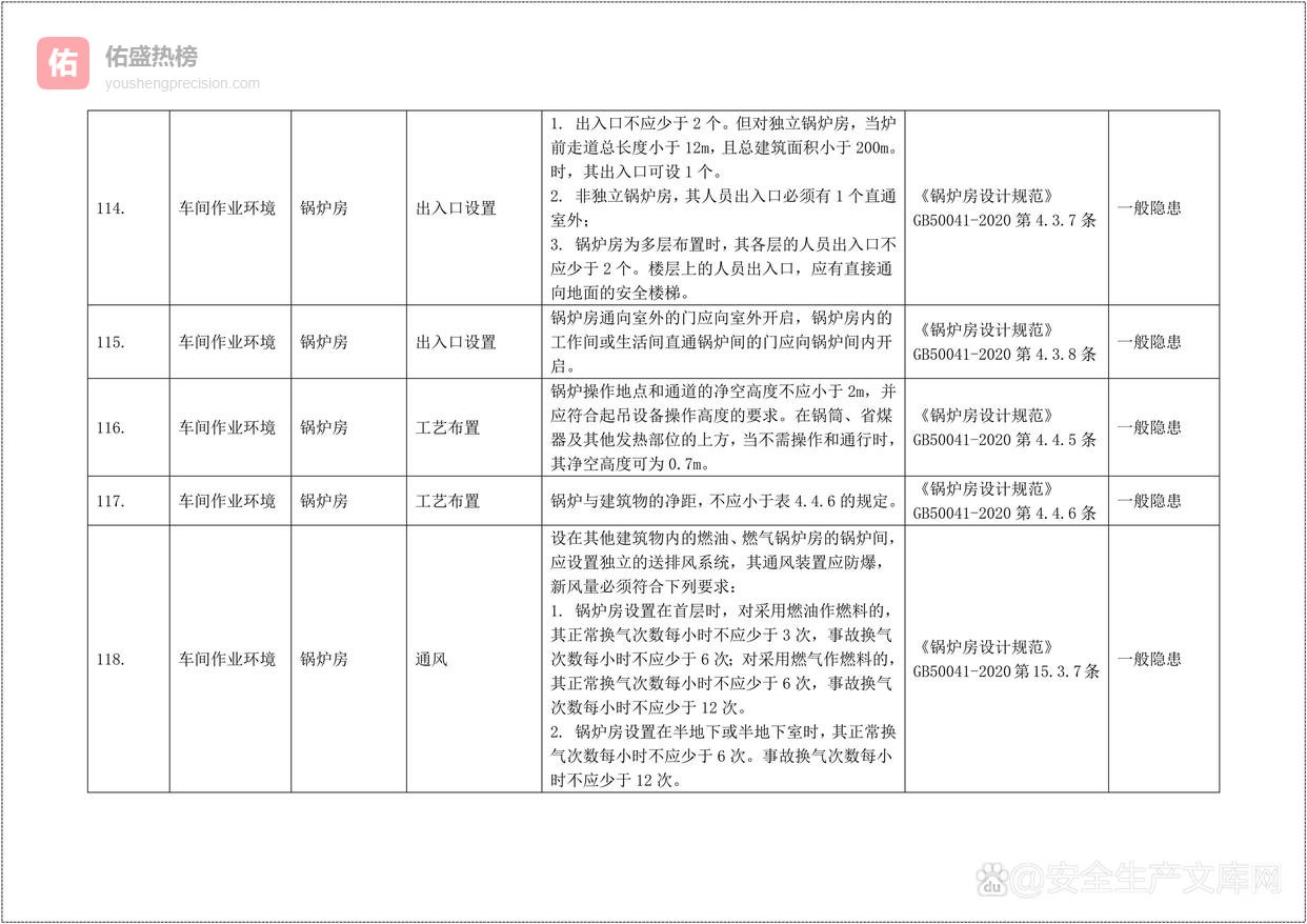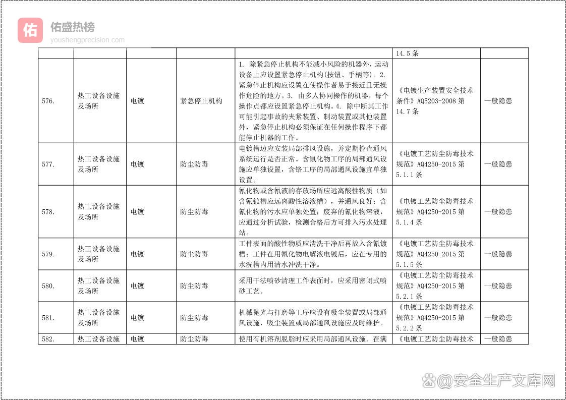 (二)车间作业环境安全细分机械加工、冲压、热处理、铸造、木工等车间的布局、通道、地面、防护要求。明确重大隐患判定标准,如危险管线穿越禁区、铸造炉前防水措施等。