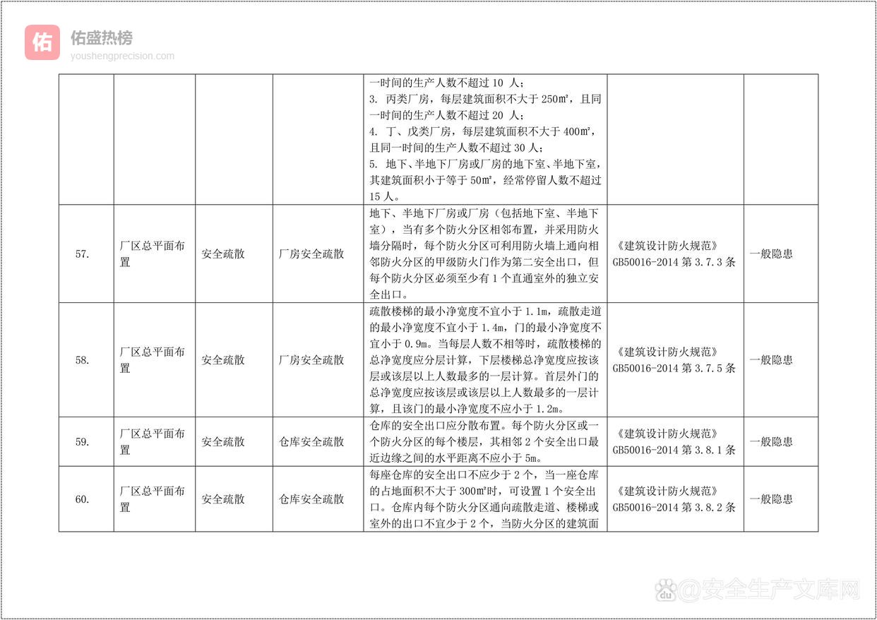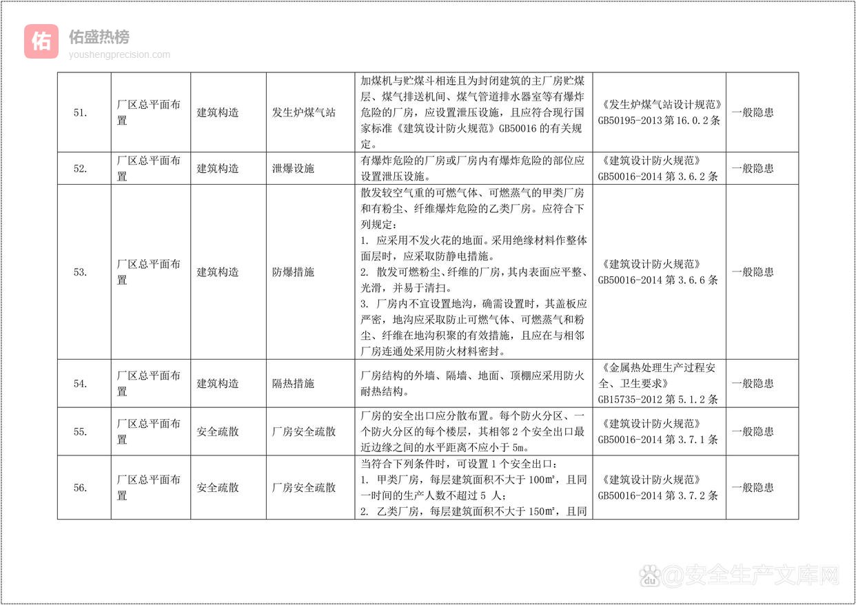 明确工业选址、总平面布置、消防车道、安全疏散等强制要求,标注对应国标依据。规范甲/乙类场所、员工宿舍、变配电站等建筑构造防火防爆标准。