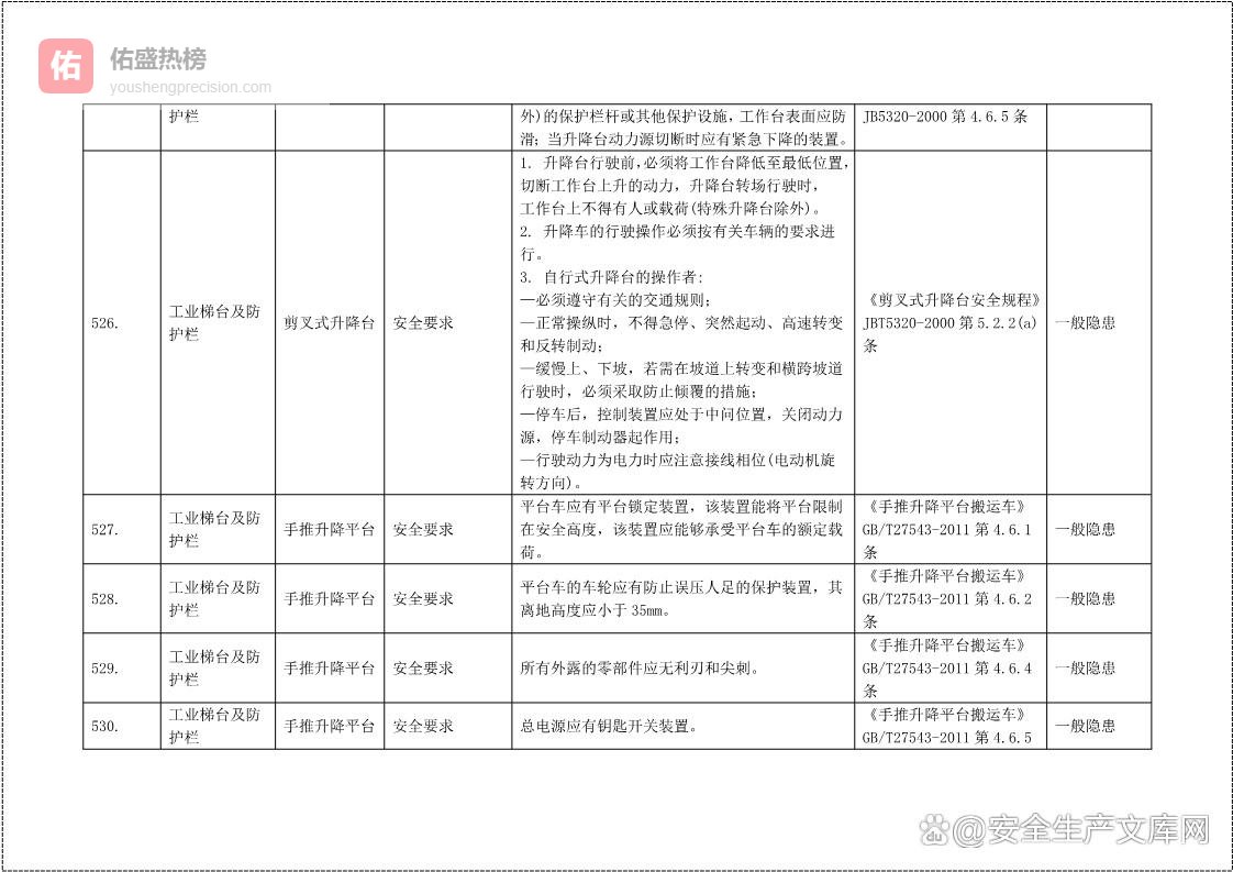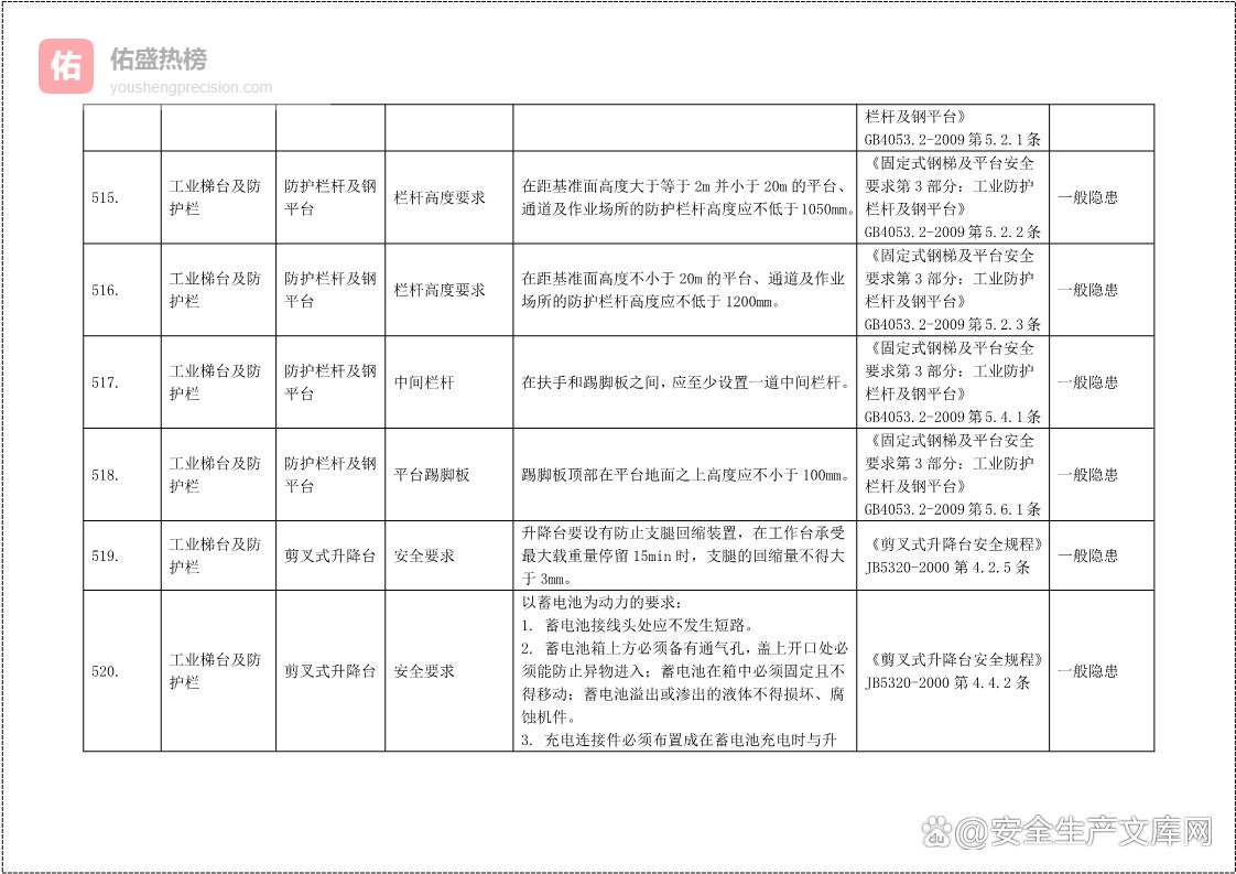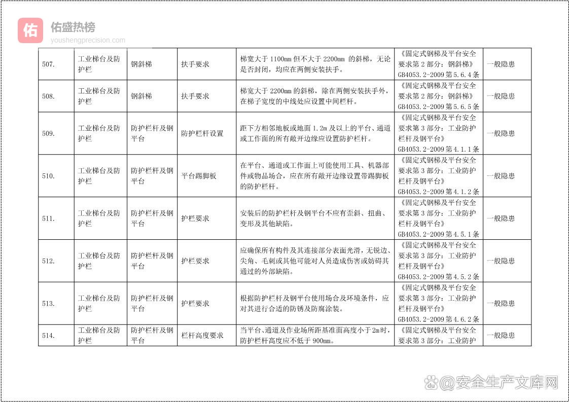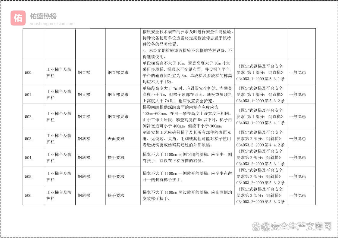 (五)工业梯台与防护设施明确钢直梯、钢斜梯、防护栏杆、升降平台的尺寸、防护、安装强制标准。
