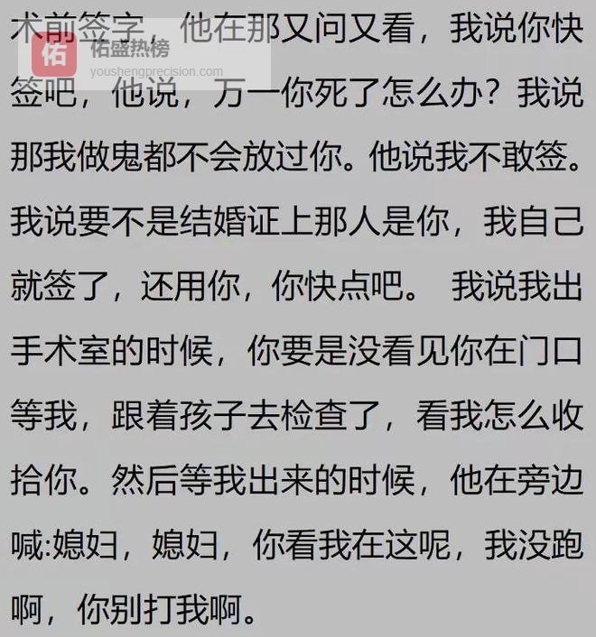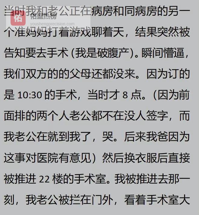 我生老大那会,进产房后我老公问我妈大概要多久?我妈说这不好说,几个小时要的,我老公一听要这么久他说那我去楼下理个发,后来我顺转剖需要他签字,头发理了一半找回来签字