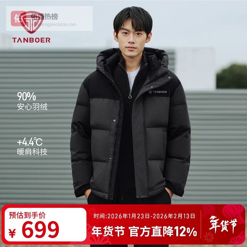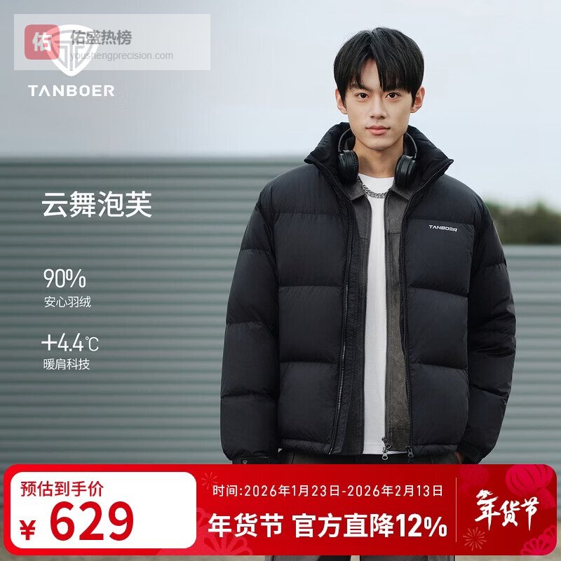 坦博尔【店铺推荐】羽绒服男短款宽松休闲90绒连帽外套潮冬装TF236353 黑色 L (175)¥