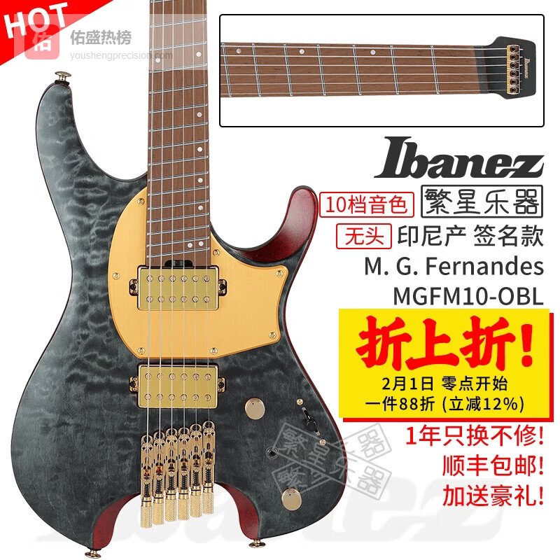 IBANEZ依班娜无头电吉他Q52 Q54 ICHI10 MGFM10 QX52 547 QX527 7弦斜品 MGFM10-OBL 黑曜石色¥
