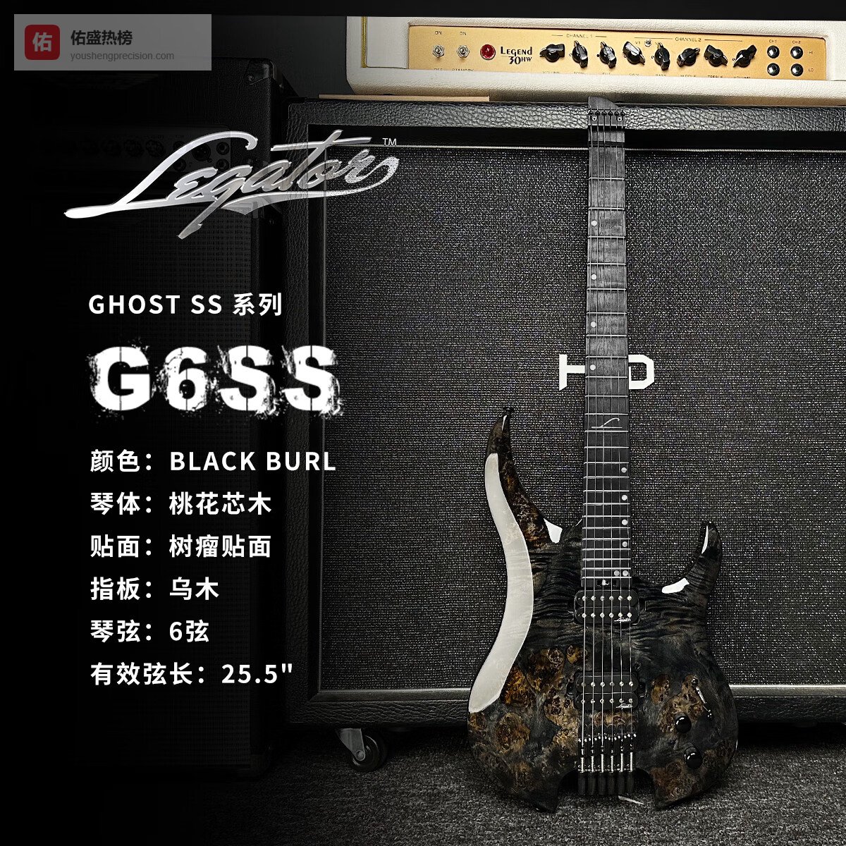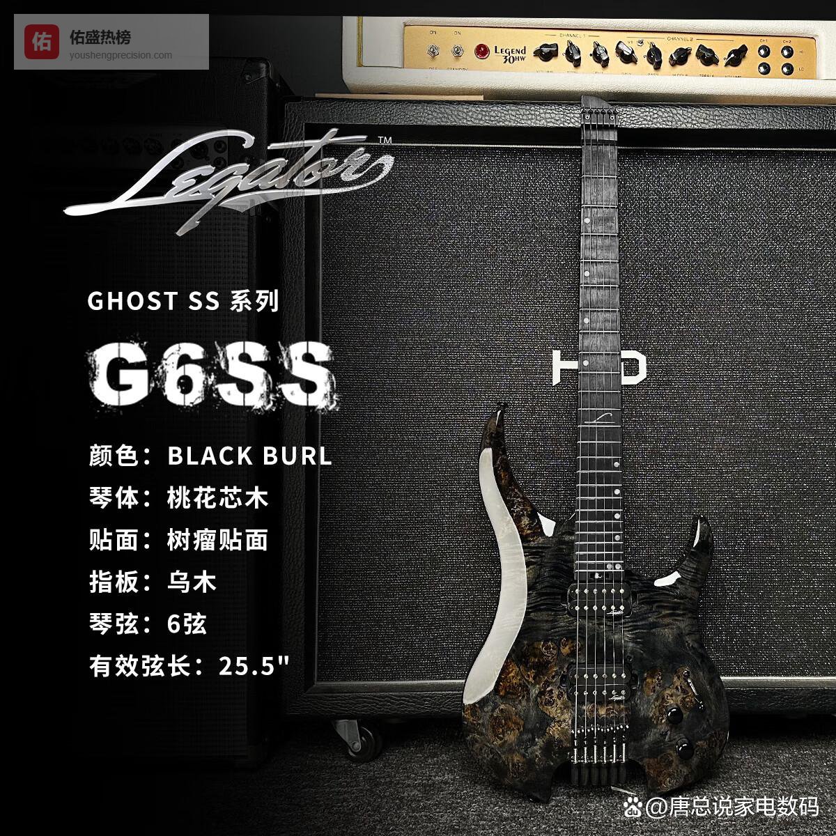 初始化乐器 Legator Ghost 无头系列 6弦/7弦/8弦 扇品电吉他现 G6SS-BLK-黑色(现货)¥