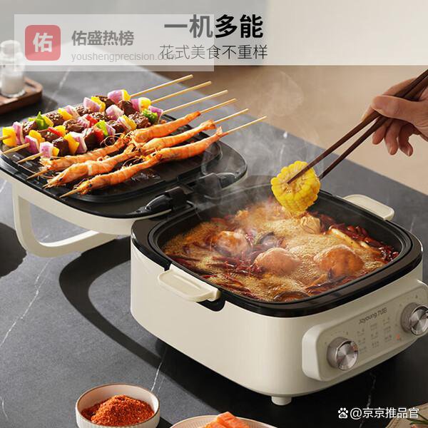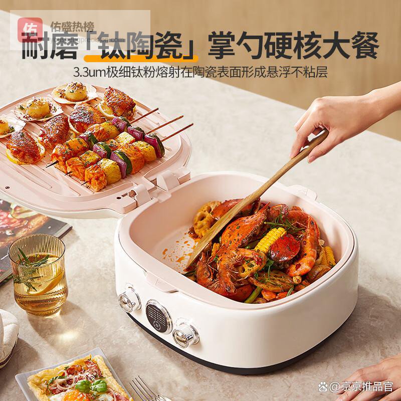 还配备可调温控,火力可以精准调节,满足不同食材的烹饪要求。可视玻璃上盖让你随时观察食物,不用担心烹饪过头。大31CM加大烤盘和7CM深度,容量充足,能做更多菜,家庭聚餐不愁。整体设计分体式,方便清洗和维护,安全可靠,品质还算挺靠谱的。