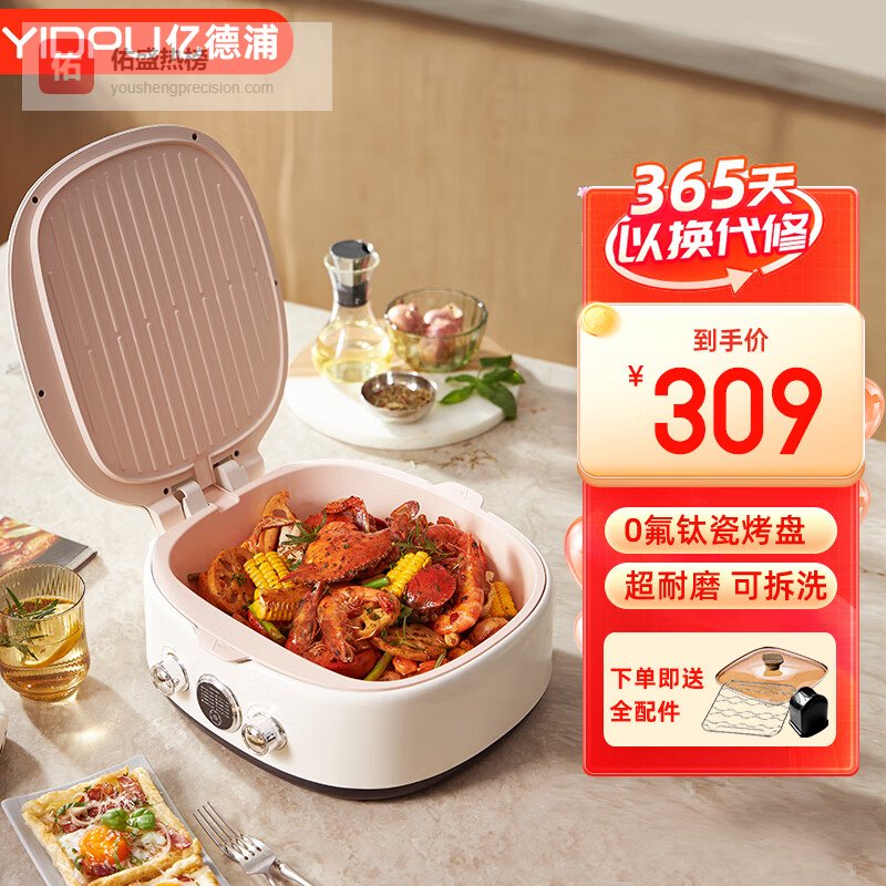 亿德浦(YIDPU)电饼铛0氟钛瓷电饼铛可拆洗家用双面加热电饼档加大加深可拆洗煎饼锅1800W大火力烙饼电火锅早餐机 陶瓷钛可拆洗¥