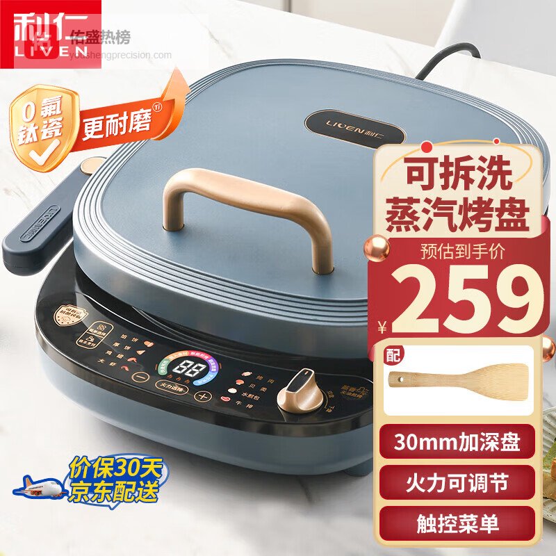 利仁(Liven)电饼铛家用可拆洗加深烤盘电饼档双面煎烤智能煎饼锅烙饼锅大号三明治早餐机烤肉锅智能电饼铛 【0氟钛瓷下拆盘/加深蒸汽/可调火力】D3088S¥