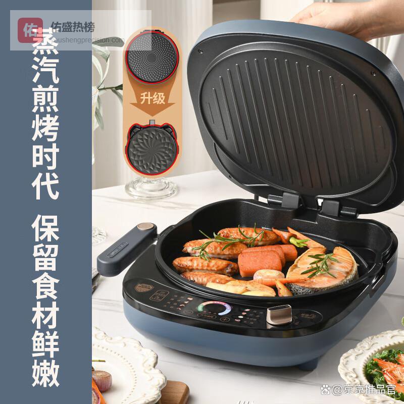 这款还融合了蒸汽煎烤功能,能让食物外酥里嫩,非常适合喜欢多样做法的人。而且,0氟钛瓷烤盘安全耐用,不粘易清洗,减少油烟,更健康。整体来说,操作简单,烹饪更方便,卫生也更有保障。