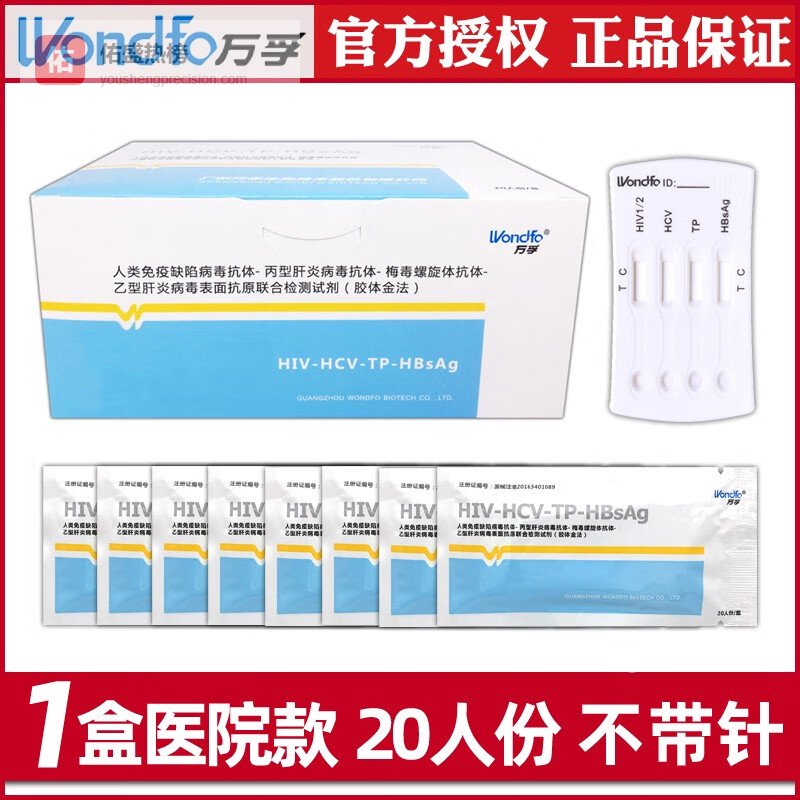 万孚艾滋病梅毒检测试纸hiv性病传染病乙肝丙肝TP联合检测板四联卡 1盒 四联卡(20人份/盒)不带针¥