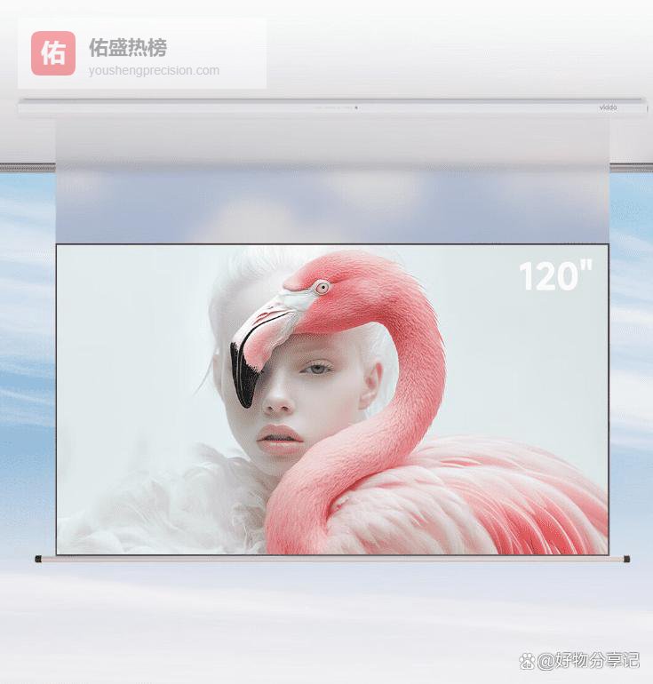 二、Vidda这款Vidda120吋光子电动幕布,能自动联动投影仪,一开机幕布就乖乖下降,关掉就自动升起,体验就像电视在帮你开关门一样顺畅,省去手动调控的小烦恼。你不用担心忘了收幕布,幕布会自己搞定,尤其适合懒人和追求高科技感的家庭。