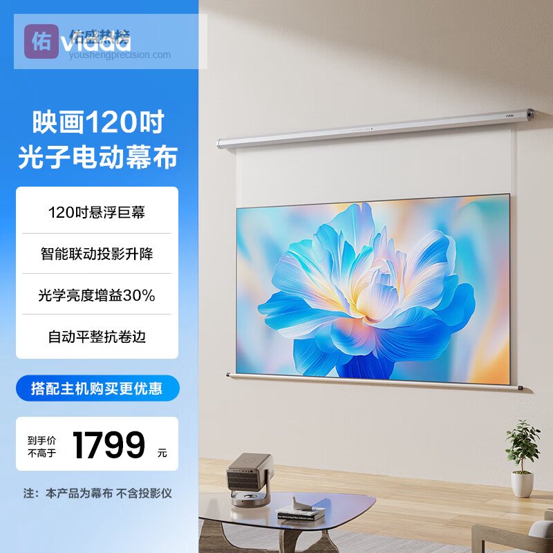 Vidda 映画120吋光子电动幕布 专业适配三色激光投影 悬浮巨幕智能联动升降海信C3/C2系列/M2 Pro可用¥