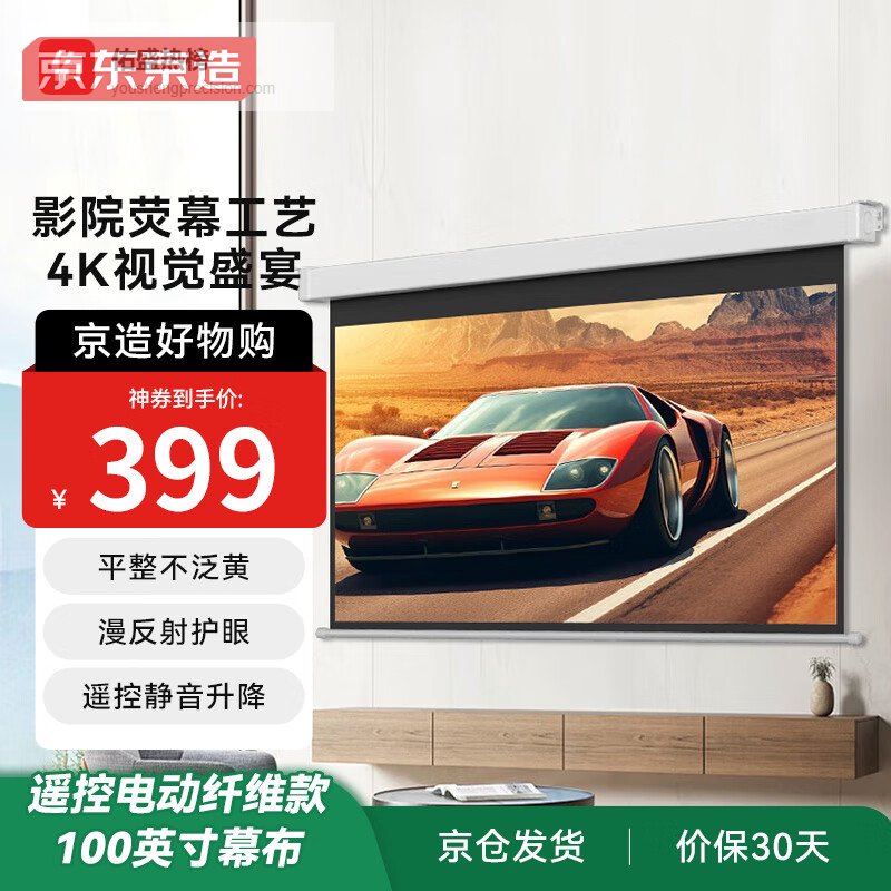 京东京造幕布家用投影幕布 电动升降幕布 100英寸16:9 适配坚果极米当贝小米投影仪中长焦投影机幕¥