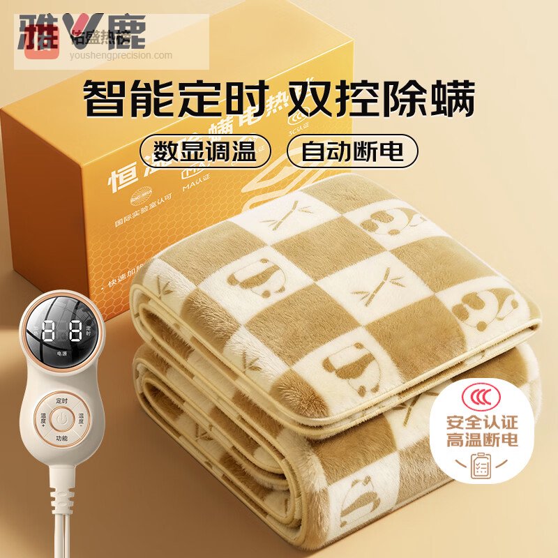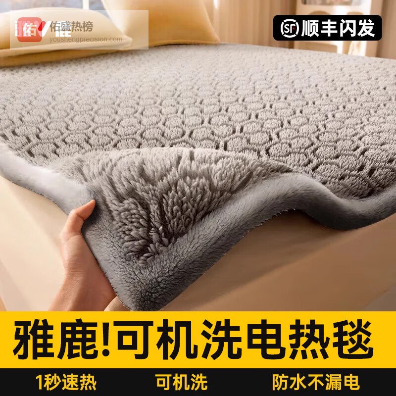 【品牌直营】雅鹿【石墨烯速热60°】可机洗电热毯单人双人3C认证电褥子双温双控可机洗丨塔夫绒【1.8¥