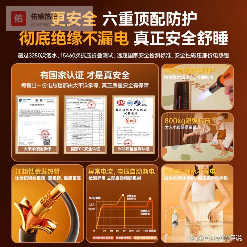 推荐理由:防水设计、安全不起火、宽大双人尺寸
