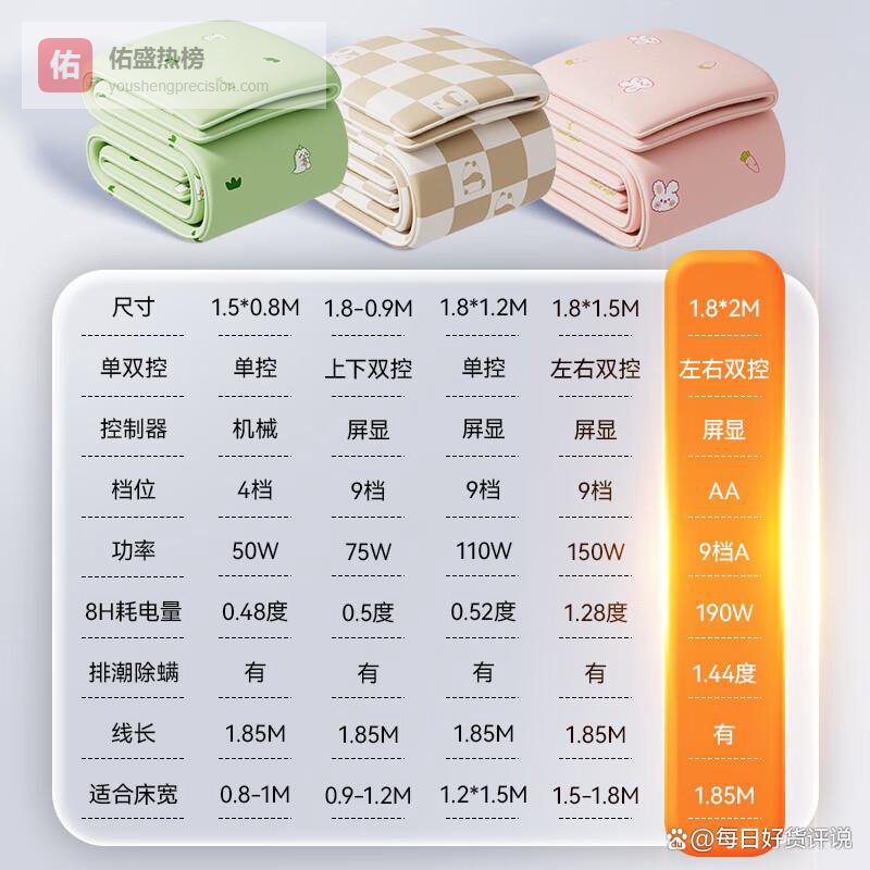 推荐理由:快速升温、双温控制、舒适面料
