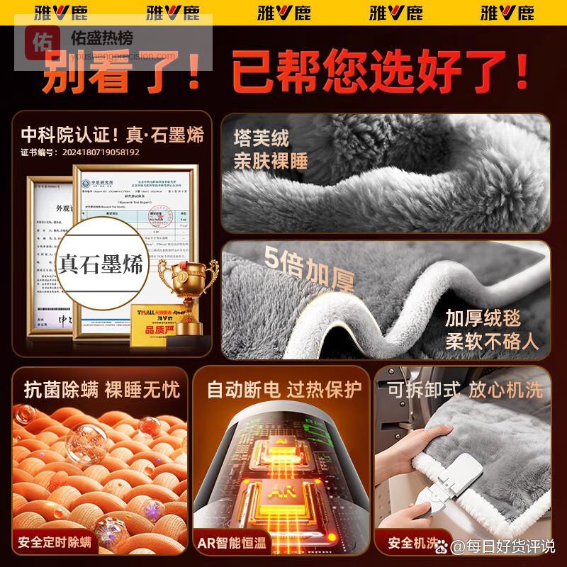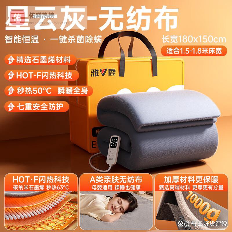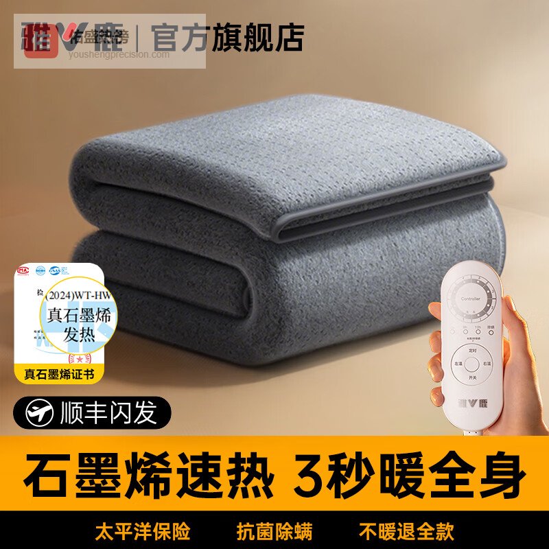 雅鹿电热毯哪款型号好?第一款:雅鹿速热石墨烯电热毯1.8米双温双控
