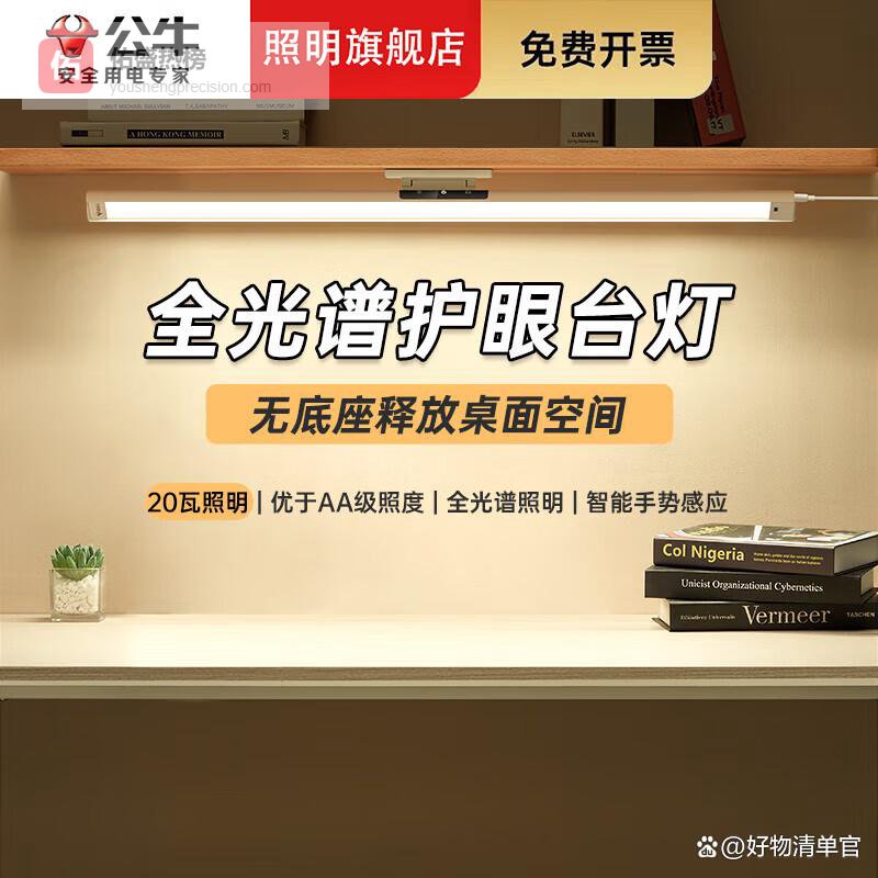 【品牌直营】公牛壁挂式护眼灯护眼台灯学习专用书桌灯吸顶灯阅读灯屏幕灯80cm-18W/全光谱照明+手¥