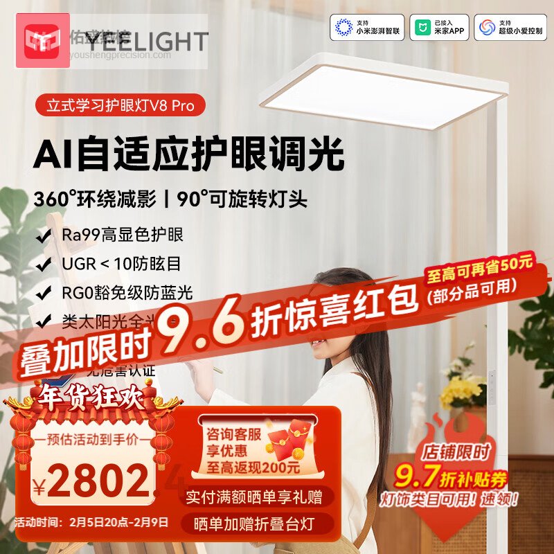【品牌直营】Yeelight立式学习灯智能大路灯落地护眼台灯儿童学生阅读写作业钢琴灯V8Pro落地护¥
