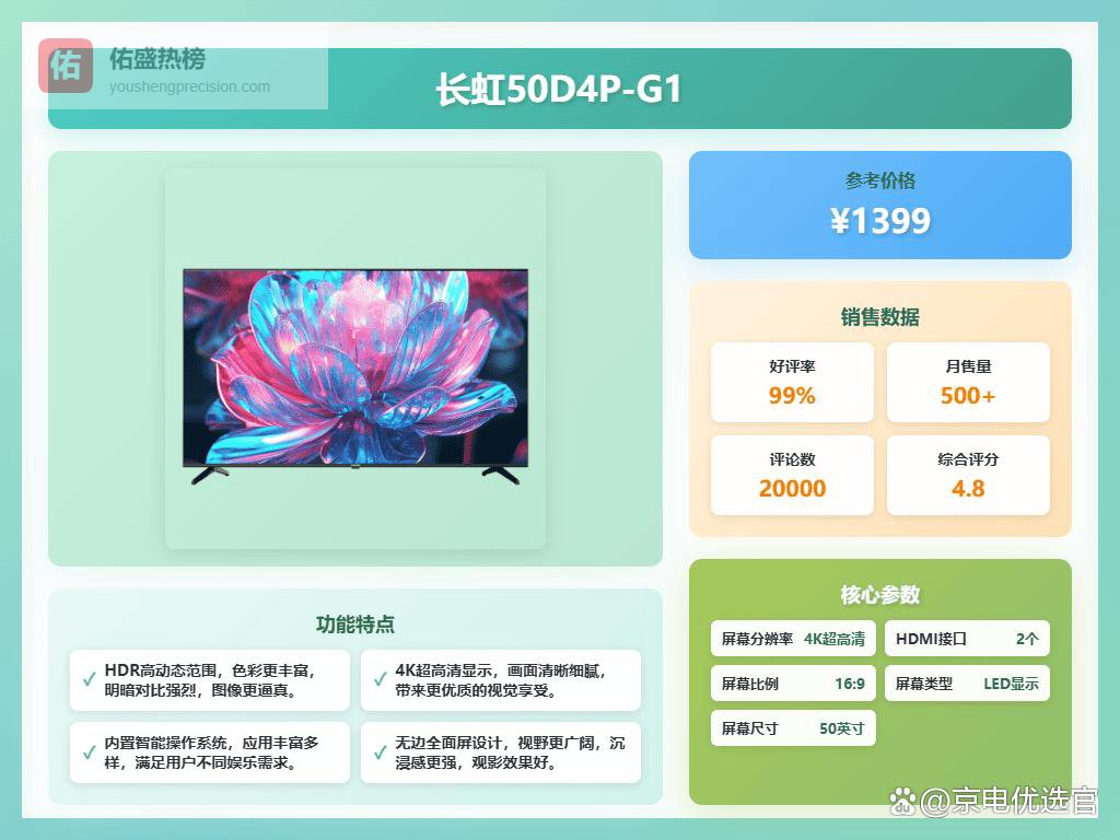 购机建议:长虹50D4P-G1适合追求高清画质和良好影音体验的普通家庭用户,尤其是喜欢看电影、打游戏或需要多设备联动的用户。它的性能足够日常使用,同时显色和声音表现都还行,是性价比不错的选择。