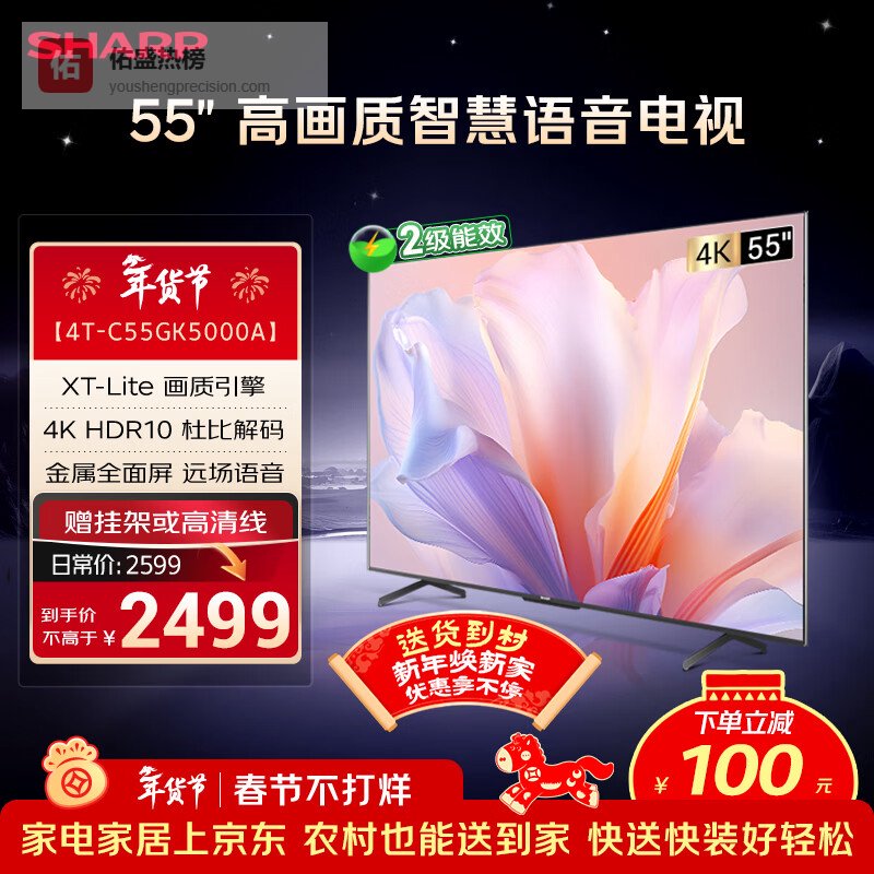 SHARP夏普经济款 55英寸夏普自研画质算法 金属全面屏2+32GB 4K超高清高画质智慧语音电视4T-C55GK5000A¥