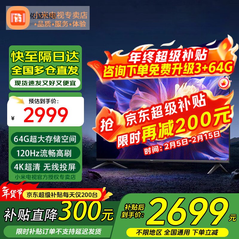 小米电视65英寸S Pro mini金属全面屏4K超高清120Hz高刷新率智能家用液晶平板电视机 65英寸 Redmi 65高刷64G大存储¥