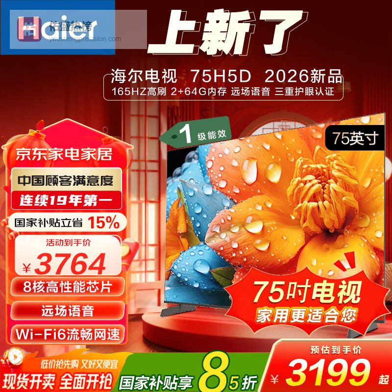 海尔(Haier)电视75英寸【2026新款上市】智能语音三重护眼全通道165HZ高刷 真4K超高清全面屏平板智慧屏电视 75英寸 64G超大内存|新品上市 |一级能效¥